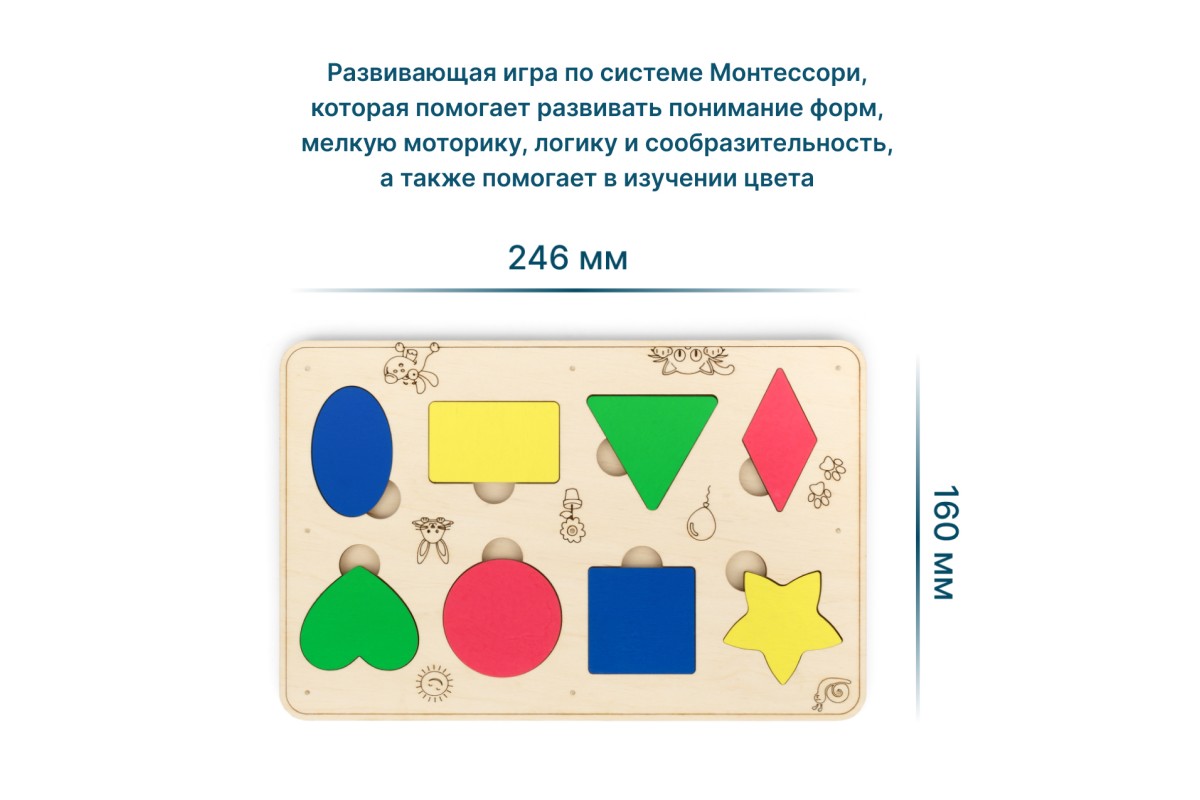 Развивающая игра в виде сортера для малышей по системе Монтессори, которая помогает развивать понимание форм, мелкую моторику, логику и сообразительность, а также помогает в изучении цвета. Сортер деревянный для детей.