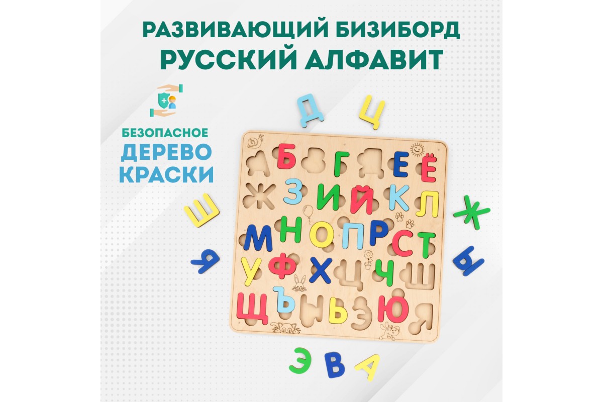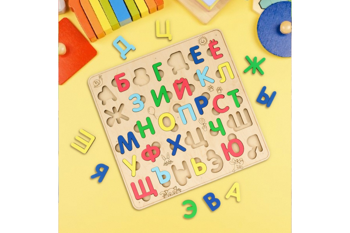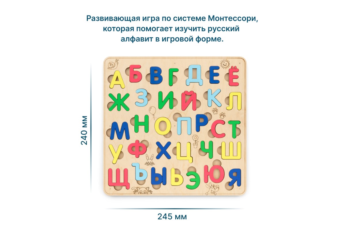 Развивающая игра в виде сортера для малышей по системе Монтессори, которая помогает изучить русский алфавит от А до Я в игровой форме.
