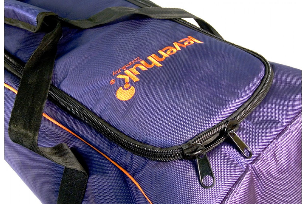 Сумка Levenhuk Zongo 80 предусматривает хранение и переноску телескопов, аналогичных по размерам Levenhuk SkyMatic 105 GTA, Bresser Refractor 90/900 NG и многих других. Раздельное хранение частей телескопа реализовано с помощью мягкой перегородки и фиксации липучками. Наличие внешних карманов удобно для хранения аксессуаров. Сумка изготовлена из прочного нейлона, рассчитана на долговременную службу. Широкий наплечный ремень облегчает транспортировку. Размер сумки: 98х29х23 см.