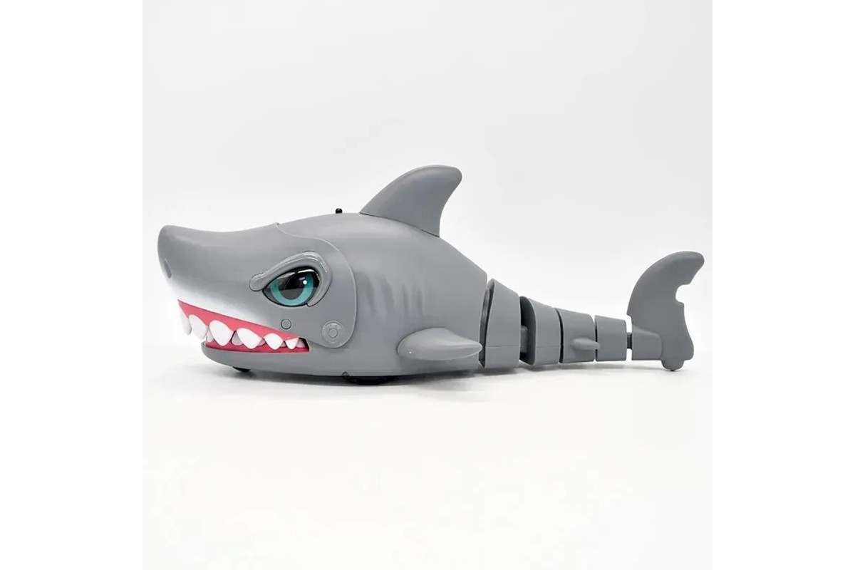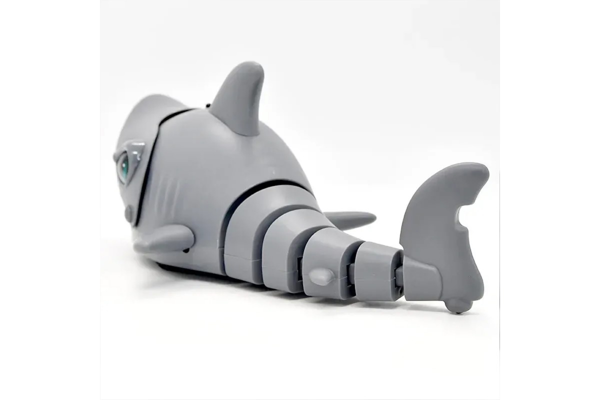 - Акула совершает реалистичные движения: открывает и закрывает пасть, плавники движутся вверх и вниз, а хвост раскачивается влево и вправо.
