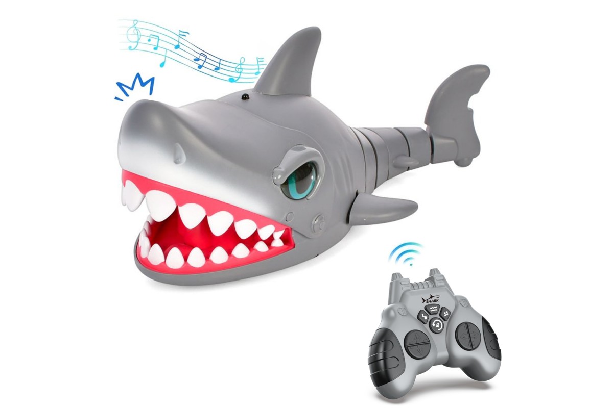 Свирепая игрушечная акула на пульте управления (36 см, акб) - CS-YS06 - это реалистичная акула на пульте управления, которая имеет красивый внешний вид. У акулы большой рот и акульи плавники, которые двигаются при движении. Игрушка имеет множество функций, возможность программирования, режим демонстрации одним нажатием, вращение на 360 градусов, движение вперед и назад и три вида музыки.
