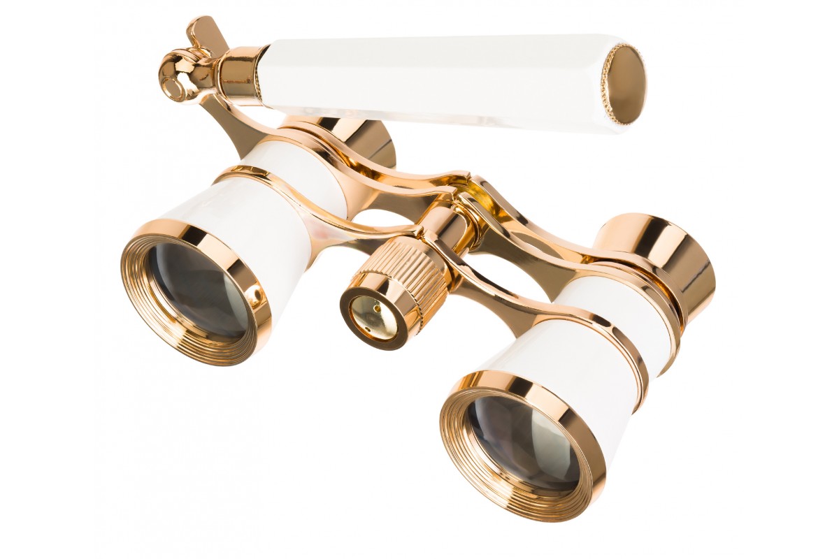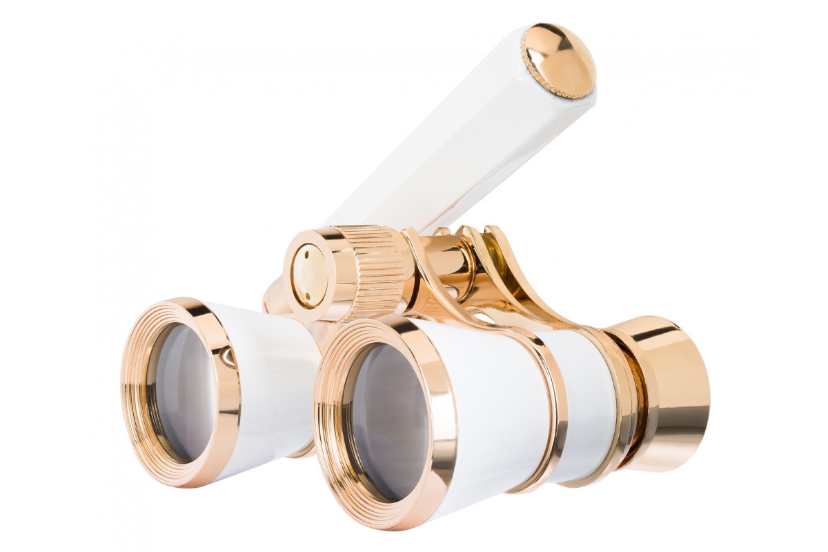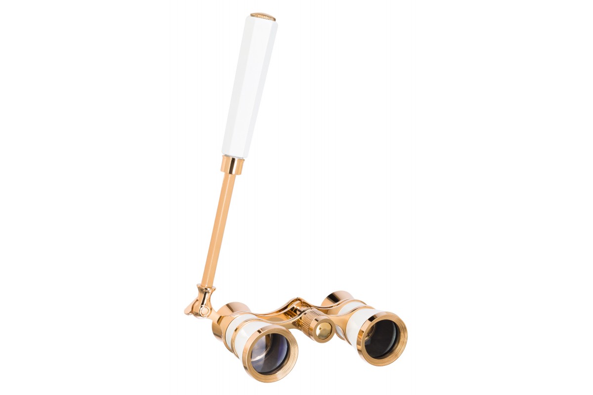 Бинокль-лорнет Levenhuk Broadway 325E – элегантная модель, созданная специально для тех, кто любит театр. Оптический инструмент выполнен в миниатюрном металлическом корпусе и дополнен специальной складной ручкой. Компактный размер делает бинокль незаменимым для посещения разных мероприятий – прибор поместится даже в дамскую сумочку. А благодаря стильному белому корпусу с золотыми деталями эта модель станет украшением вашего вечернего образа.