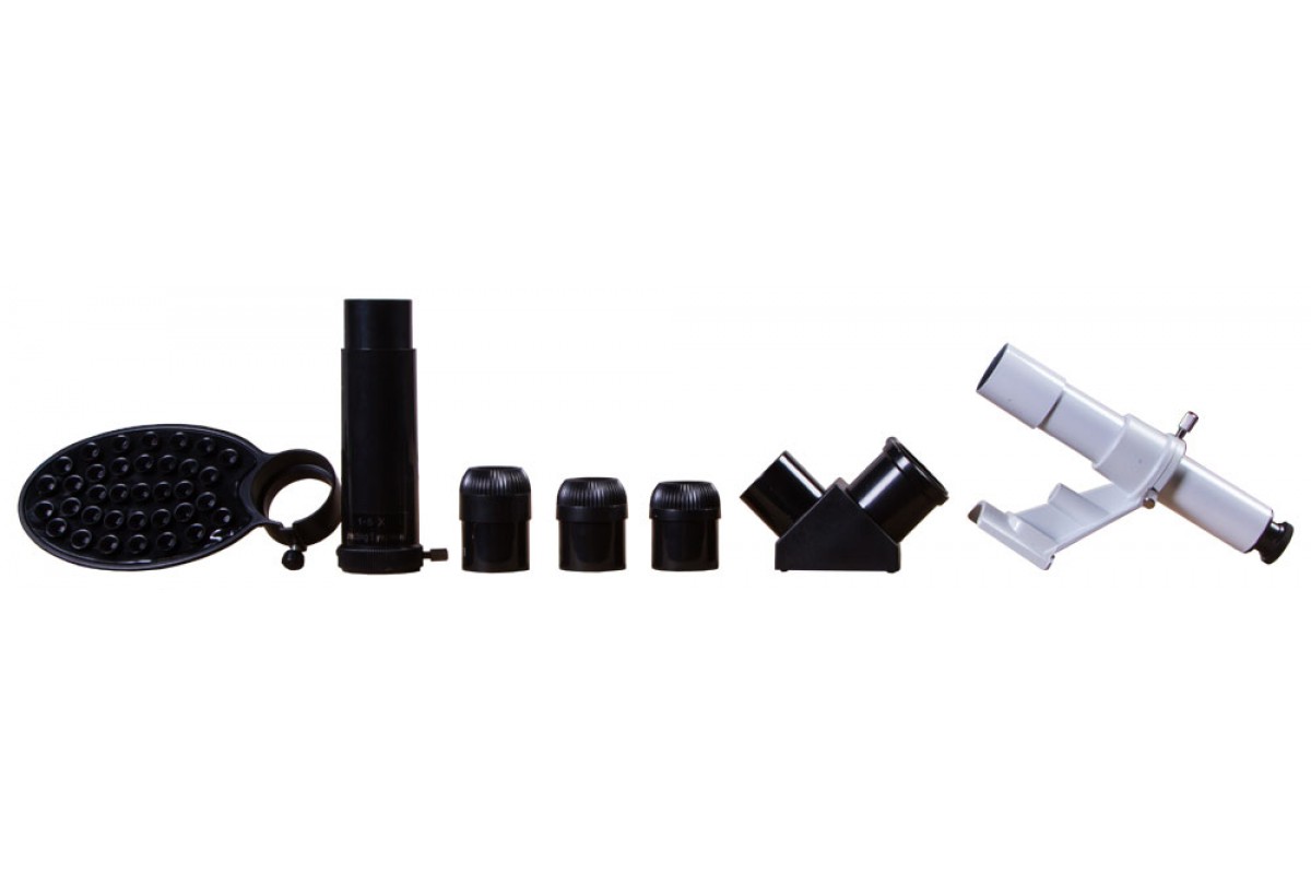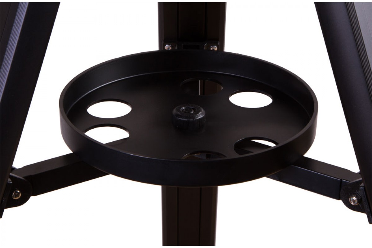Управлять телескопом несложно, но базовые умения вам все-таки понадобятся. Экваториальная монтировка хорошо справляется с ведением астрономических объектов по небосклону и прекрасно подходит для длительных наблюдений. В комплект включена алюминиевая тренога с лотком для аксессуаров. Она устойчива, высоту ее ножек можно регулировать.