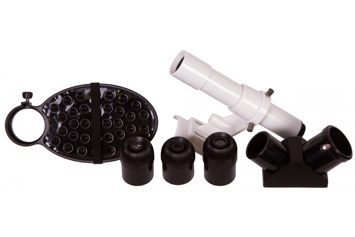 - Окуляры в комплекте20 мм (17,5х), 12,5 (28х) и 4 мм (87,5х)