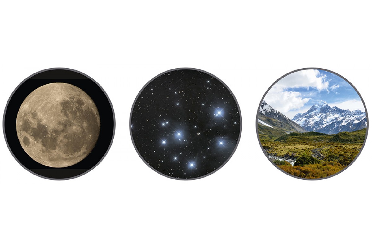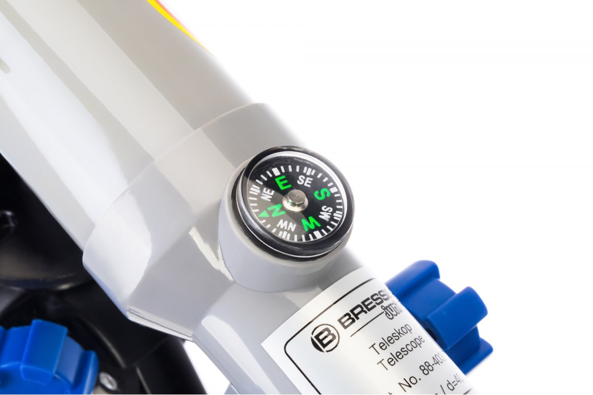 Настольная тренога с азимутальной монтировкой позволяет пользователю очень быстро освоить управление. Чтобы направить телескоп на объект, достаточно просто повернуть оптическую трубу вправо, влево, вверх или вниз. Для ориентирования по сторонам света в трубу встроен небольшой компас. Для наземных наблюдений рекомендуется использовать диагональное зеркало (в комплекте), которое исправляет «перевернутость» картинки, свойственную всем рефракторам.