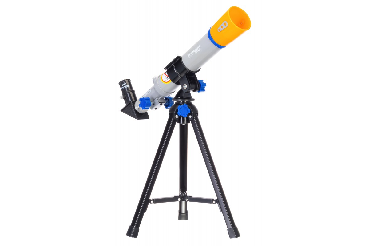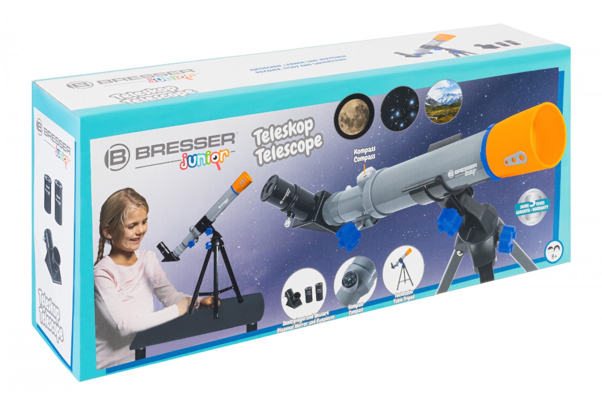 Детский телескоп Bresser Junior 40/400 AZ создан специально для самых юных пользователей. Его отличительные особенности – элементарное управление, интересный дизайн корпуса, небольшие размеры и вес. В телескоп можно наблюдать Луну или наземные объекты. Фактически он представляет собой два прибора в одном: телескоп и зрительную трубу. В комплекте есть все необходимое, поэтому приобретать что-либо дополнительно не нужно.