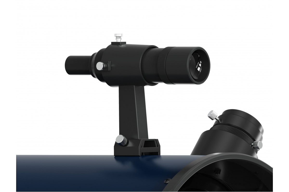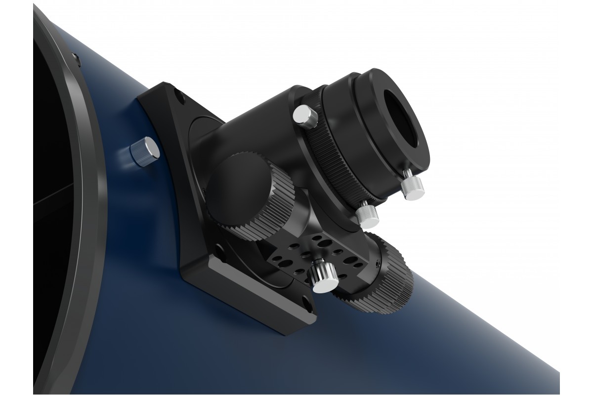 За выдающуюся четкость, яркость и равномерность картинки отвечает продуманная оптическая схема, элементы которой выполнены из стекла BK-7. Главное зеркало, выполненное в параболической форме, эффективно компенсирует сферическую аберрацию и правильно фокусирует световые лучи, обеспечивая резкое изображение по всему полю зрения. Высокорефлективное (92–95%) отражающее покрытие из качественного алюминия не только улавливает максимум излучения при наблюдении тусклых объектов, но и расширяет возможности астрономических исследований, если пользователь заинтересован в работе с ультрафиолетовым и инфракрасным спектрами. Для точной настройки резкости используется реечный 2-скоростной фокусер 2", дополненный адаптером под окуляры с посадочным диаметром 1,25".