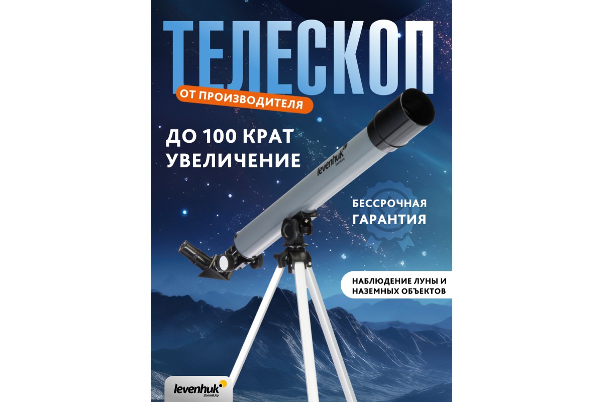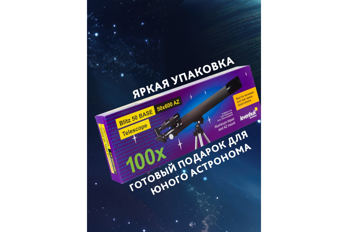 С телескопом Levenhuk Blitz 50 BASE можно изучать лунную поверхность и наземные объекты. Это и телескоп, и зрительная труба в одном приборе, причем с расширенной и сбалансированной комплектацией. Прилагаемые аксессуары полностью раскрывают возможности оптики, поэтому телескоп не требует дополнительных вложений, что делает его отличным выбором для начинающего астронома.