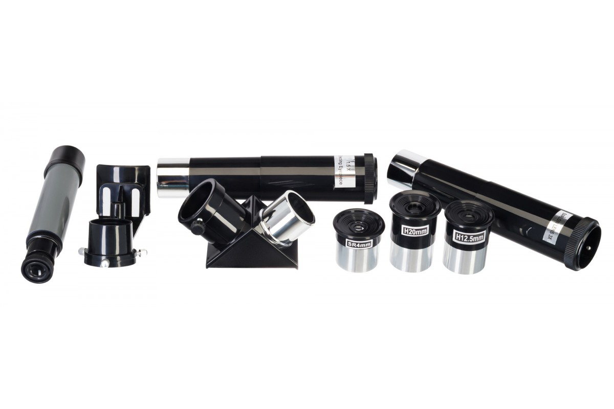 - Окуляры в комплектеSR4 мм (175х), H12,5 мм (56х), H20 мм (35х), оборачивающий окуляр 1,5х