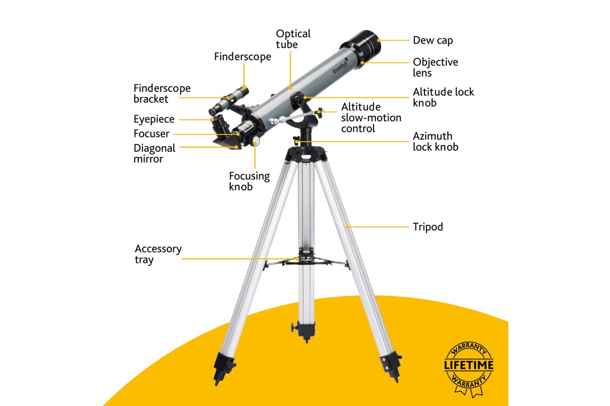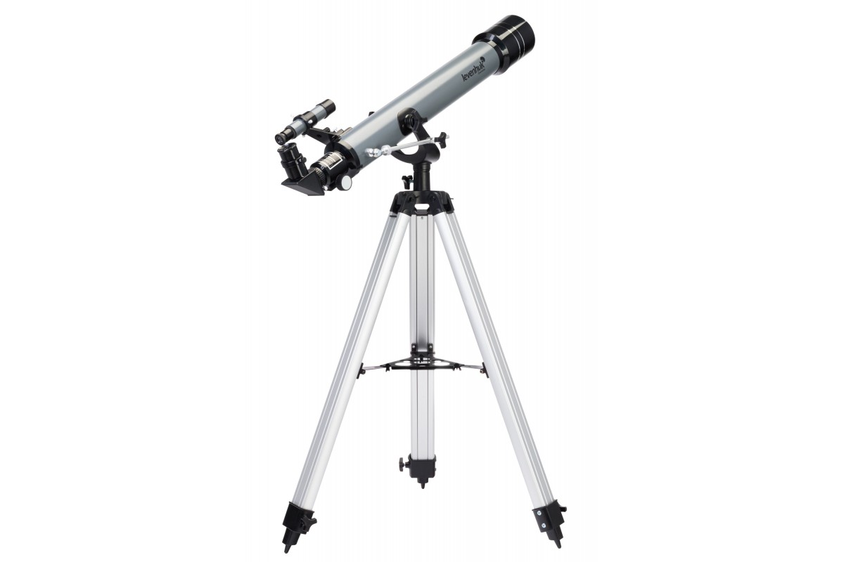 Оптическая схема – ахроматический рефрактор со стеклянными линзами, на оптические элементы нанесено антибликовое покрытие, а апертура составляет 70 мм. Объектив хорошо собирает свет, отлично работает по наземным объектам и достойно проявляет себя при визуальных наблюдениях космоса. Оптическая труба установлена на вилочную азимутальную монтировку, которая позволяет быстро наводить телескоп на нужные объекты. Микровинт на вертикальной оси дает возможность проводить более точную наводку.