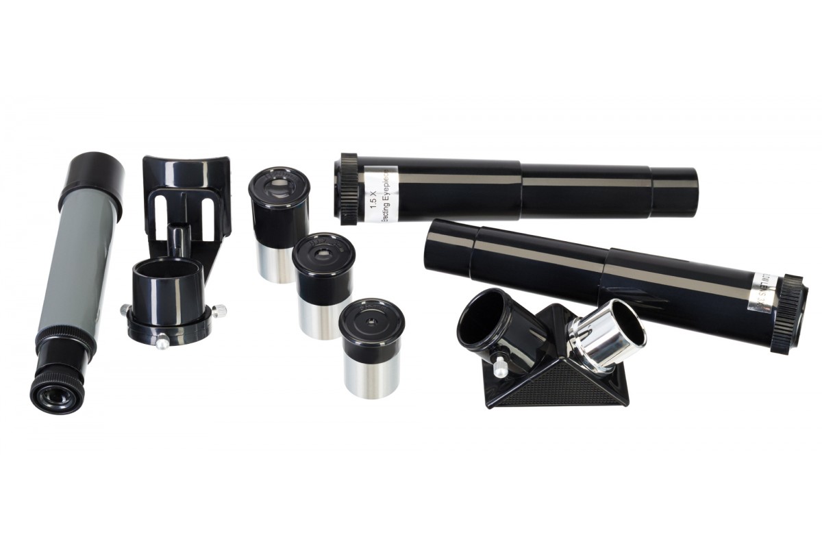 Ахроматическая оптика убирает из передаваемой картинки многие оптические искажения, что улучшает общее качество изображения и позволяет видеть больше деталей. Линзы сделаны из стекла и дополнены антибликовым покрытием. Апертура в 80 мм позволяет оптической системе собирать достаточно света для наблюдения многих астрономических объектов. И важно, что в комплектацию включено множество аксессуаров, которые избавят от необходимости приобретать что-либо дополнительно.