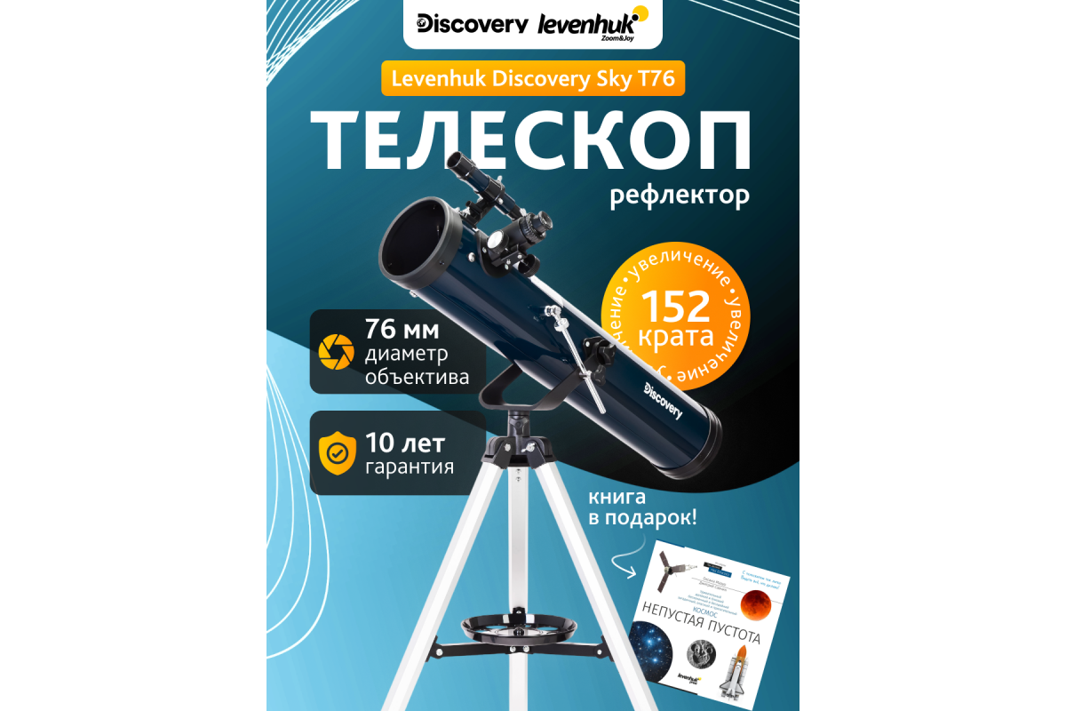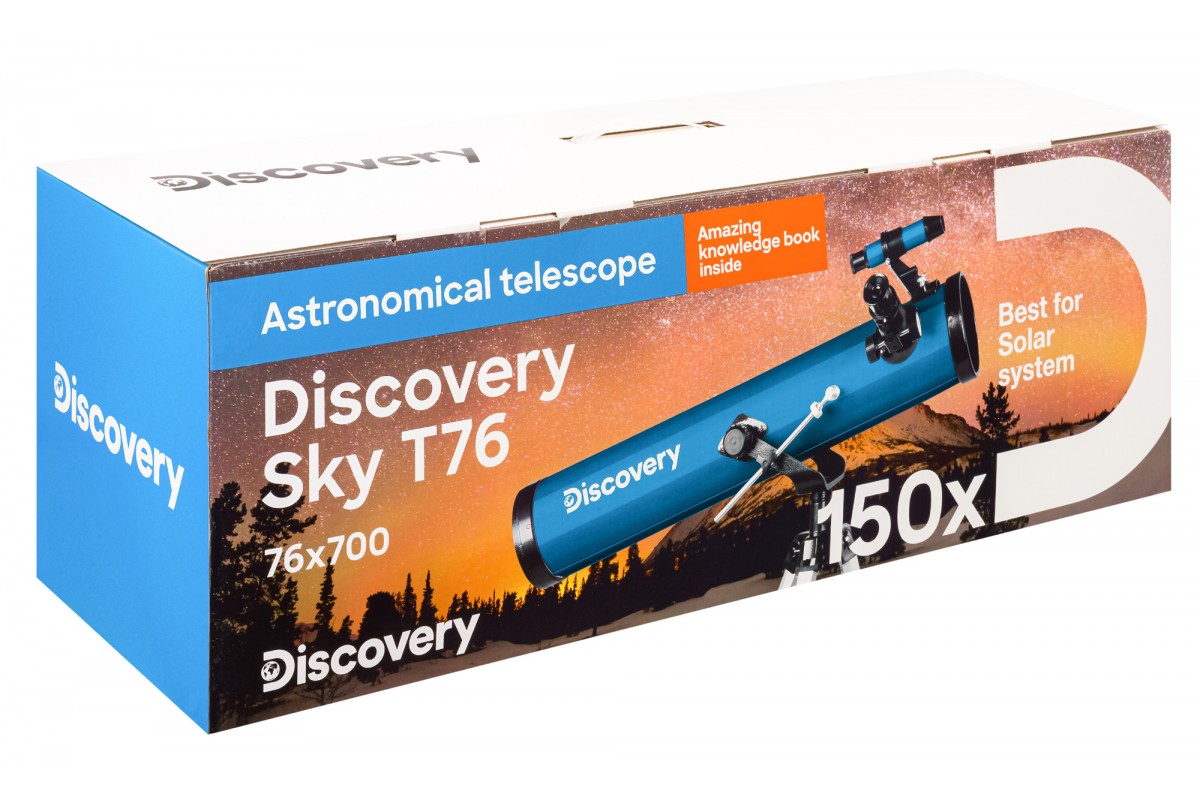 Телескоп Levenhuk Discovery Sky T76 создан специально для начинающих астрономов, которые только знакомятся с основами астрономии и ищут первый телескоп в жизни. В этот рефлектор Ньютона хорошо видны Луна, планеты Солнечной системы и их спутники, кометы и метеорные потоки, а также многие яркие объекты дальнего космоса – туманности, галактики и звездные скопления. В комплекте есть все необходимое для старта, в том числе познавательная книга о космосе.