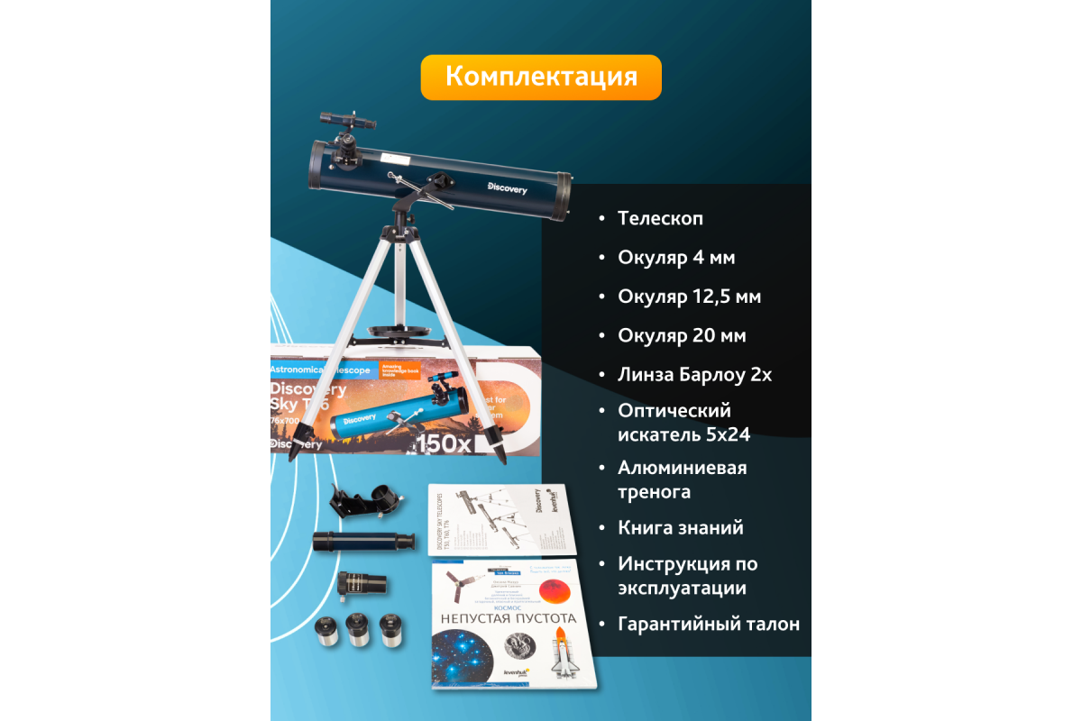 • Богатая комплектация: необходимые оптические аксессуары и книга о космосе