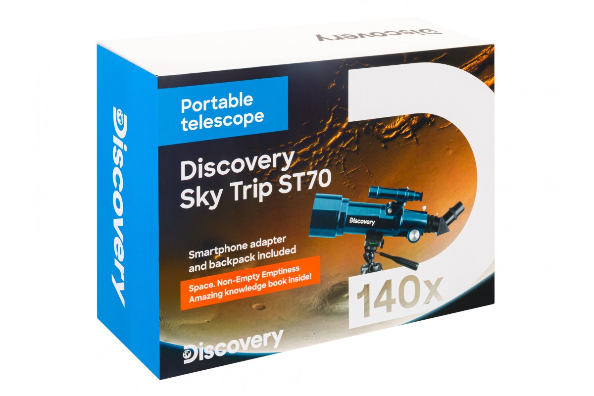 Телескоп Levenhuk Discovery Sky Trip ST70 – компактный рефрактор с книгой знаний в комплекте. Он прекрасно подойдет начинающим астрономам для первых наблюдений. Из яркой энциклопедии «Космос. Непустая пустота» можно почерпнуть познавательную информацию о небесных телах и наблюдениях за ними, а главное – сразу же применить новые знания на практике. Для наблюдений доступны планеты Солнечной системы и их спутники, а также самые яркие объекты дальнего космоса. Земные ландшафты тоже можно исследовать, используя оптическую трубу телескопа как подзорную, – благодаря наличию в комплекте диагональной призмы.