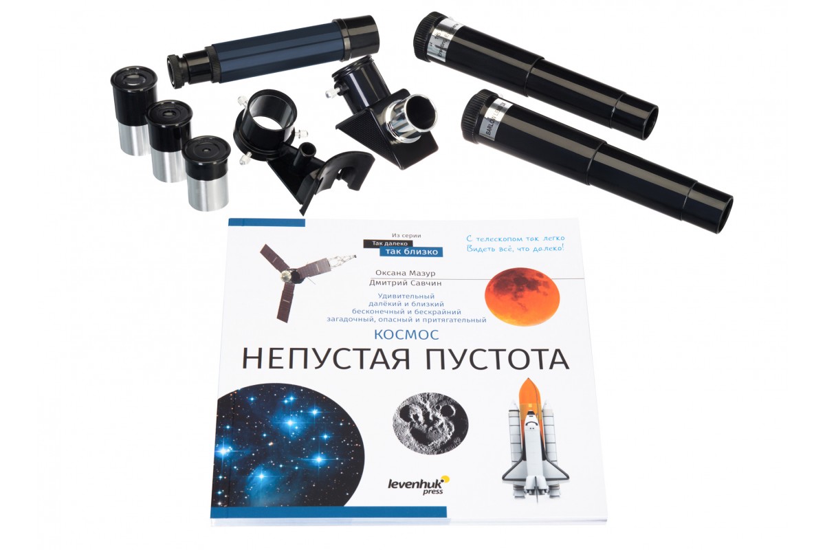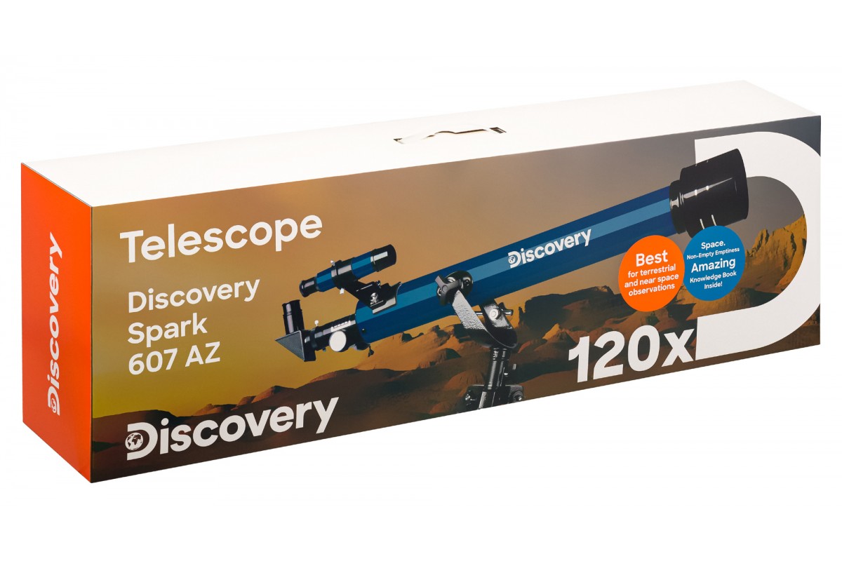 Телескоп Levenhuk Discovery Spark 607 AZ с книгой – это все, что нужно начинающему любителю астрономии. Прибор прост в освоении, укомплектован всем необходимым, отлично подходит для изучения Луны и наземных ландшафтов. С его помощью также можно увидеть в общих чертах некоторые планеты и наиболее яркие дипскай-объекты. В комплекте есть красочная познавательная книга «Космос. Непустая пустота» – это идеальное приложение к телескопам-рефракторам, так как она посвящена в первую очередь ближнему космосу, по которому работают приборы этой оптической схемы.