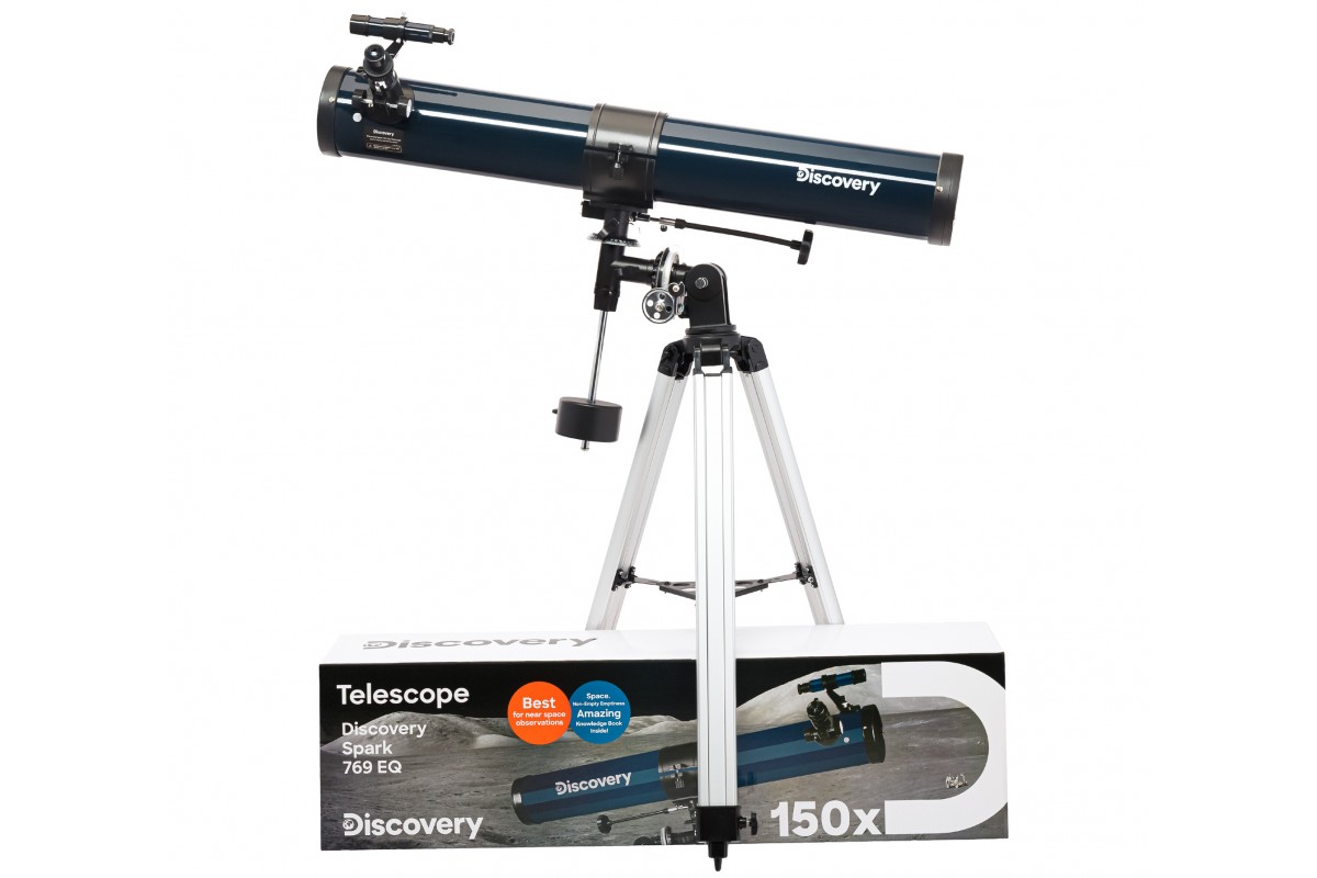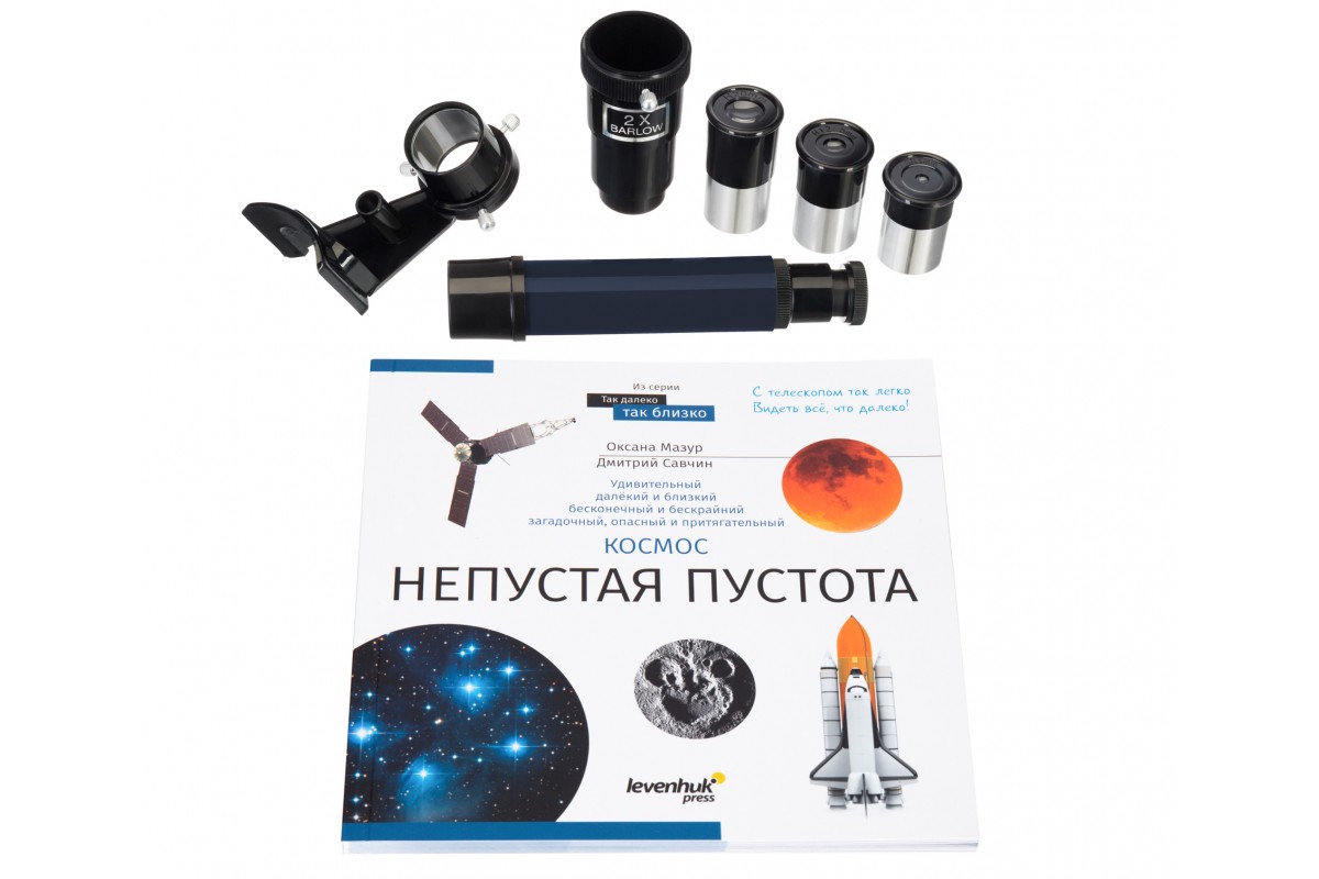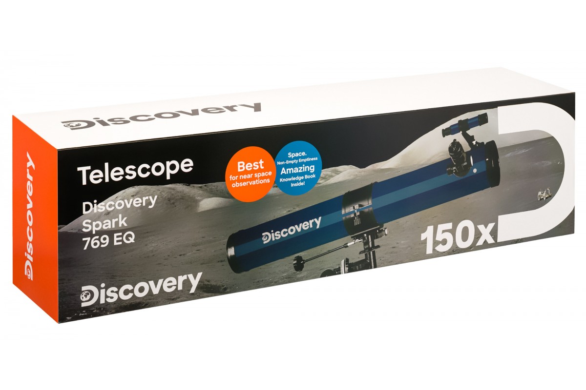 Всем, кто мечтает увидеть своими глазами дальний космос, подойдет рефлектор Levenhuk Discovery Spark 769 EQ – простой в обращении телескоп на экваториальной монтировке. С его помощью можно рассматривать галактики, туманности, звездные скопления и другие объекты Мессье. Ближний космос тоже не обойден вниманием – для наблюдений доступны Луна и Солнечная система. В комплекте есть яркая познавательная книга «Космос. Непустая пустота» – отличное подспорье для начинающего астронома, которое поможет узнать больше о небесных телах, наблюдаемых в телескоп.