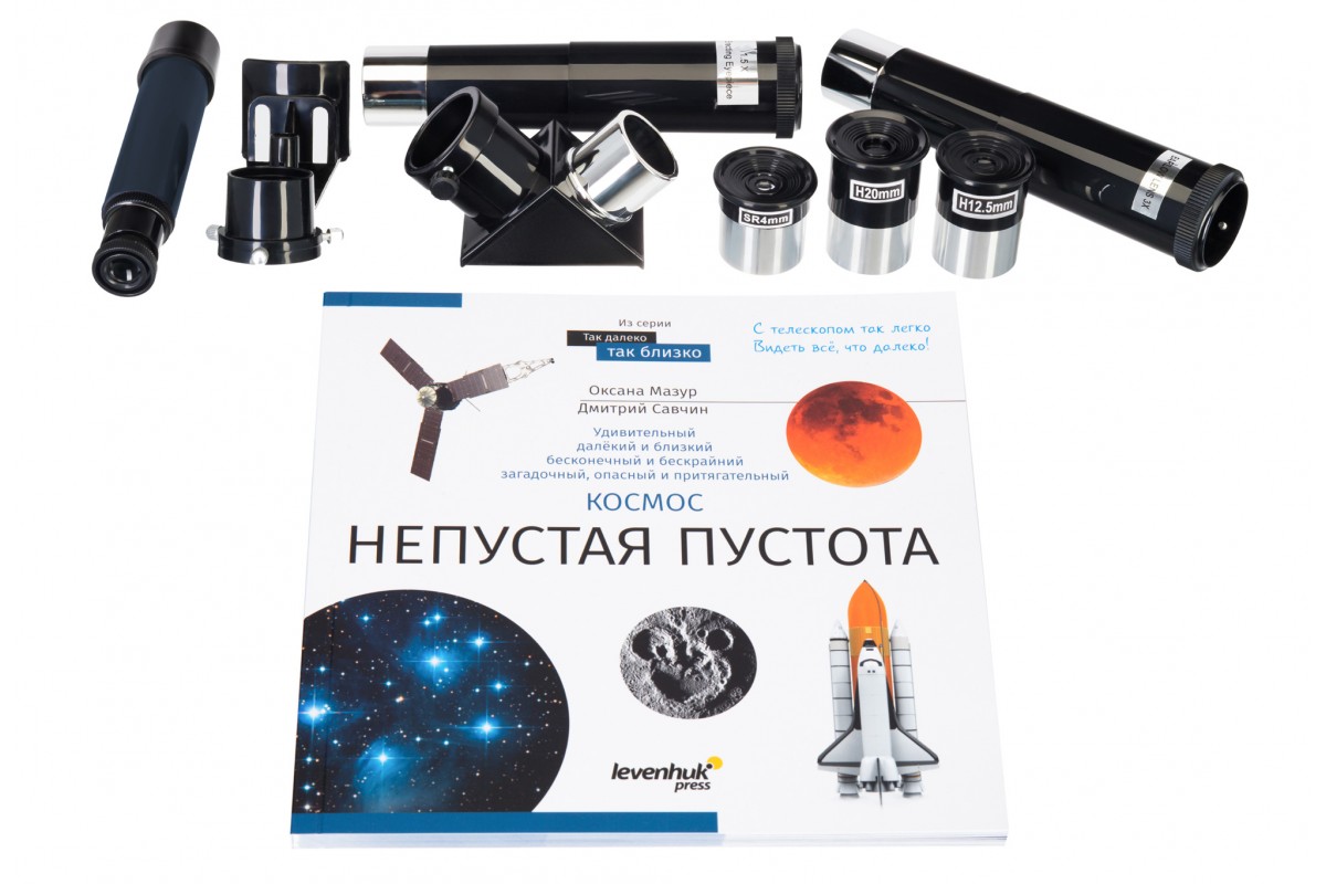 - Окуляры в комплектеSR4 мм (175х), H12,5 мм (56х), H20 мм (35х), оборачивающий окуляр 1,5х