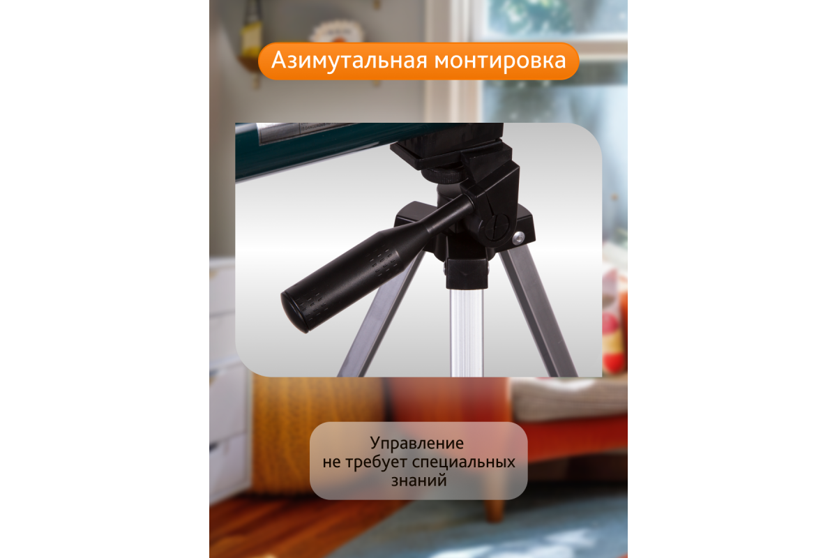 Телескоп Levenhuk LabZZ T2 комплектуется азимутальной монтировкой и алюминиевой треногой. Высота ножек треноги регулируется. Монтировка позволяет быстро находить нужные объекты на звездном небе даже неподготовленному пользователю.