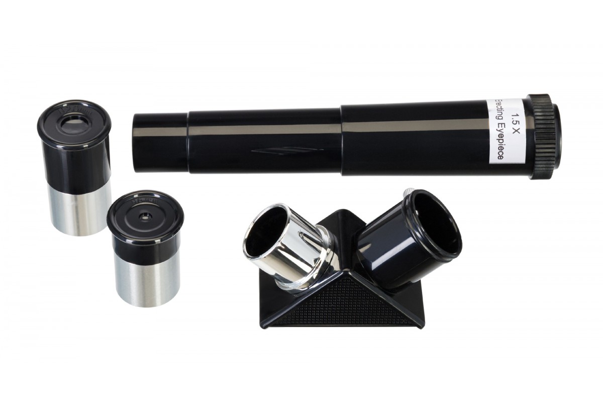 Телескоп поставляется со всеми необходимыми для наблюдений аксессуарами, поэтому прекрасно подходит для подарка. К тому же в комплектацию включен кейс для переноски. Он сделан из прочного пластика и имеет удобную ручку. Телескоп и все принадлежности легко и надежно размещаются внутри.