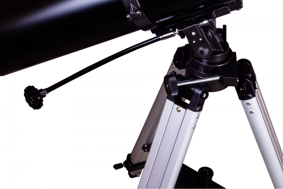 Оптическая труба установлена на классическую азимутальную монтировку. Управлять ею сможет даже пользователь, который ранее никогда не работал с оптической техникой. Монтировка крепится к устойчивой алюминиевой треноге, высоту которой можно регулировать. Есть лоток для аксессуаров.