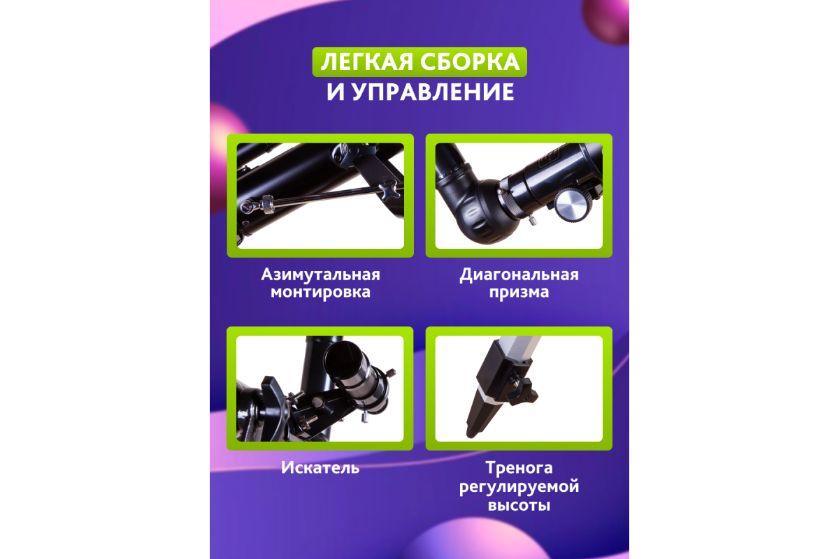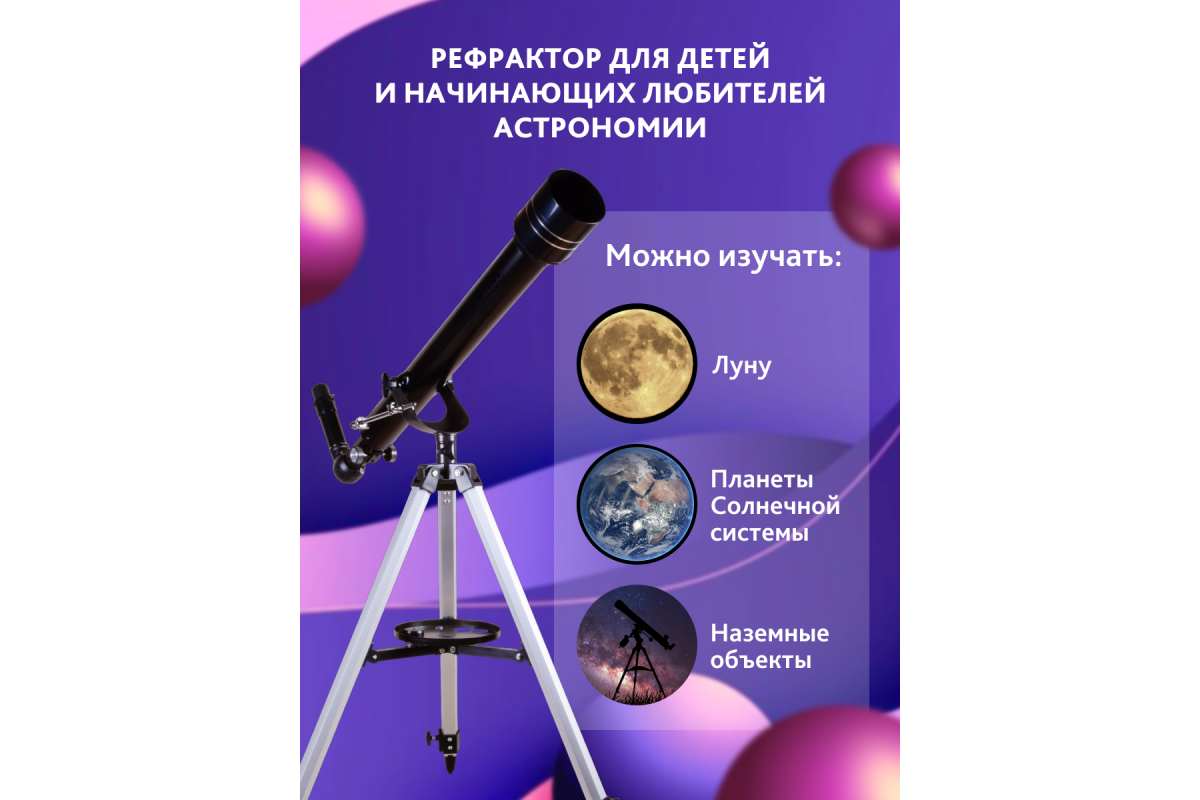 • Рефрактор на азимутальной монтировке для изучения Луны, планет Солнечной системы и наземных ландшафтов