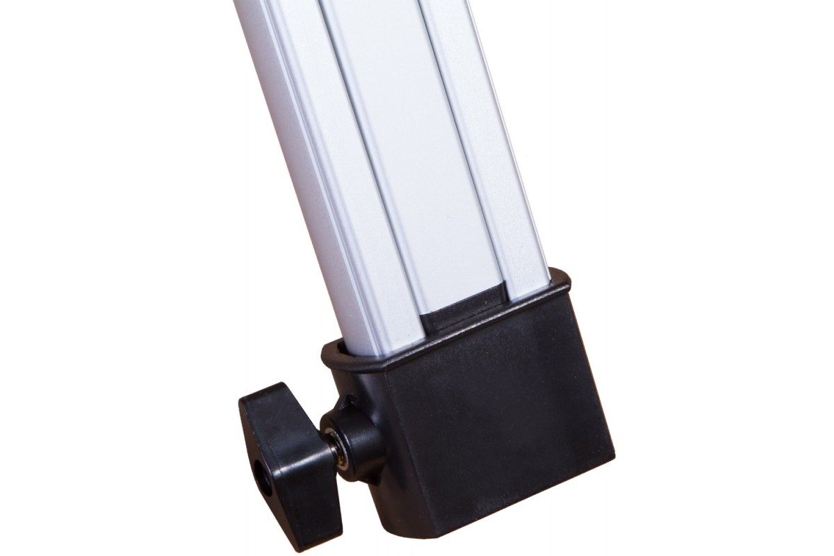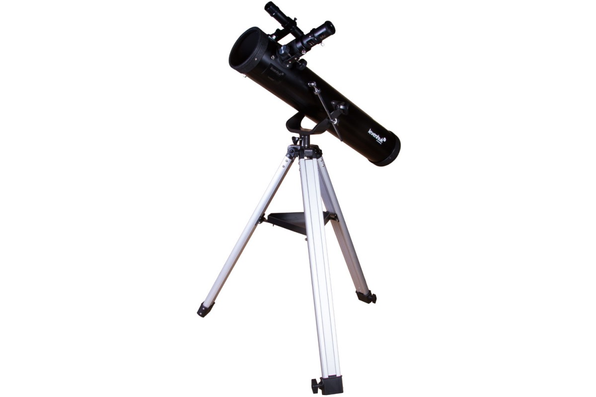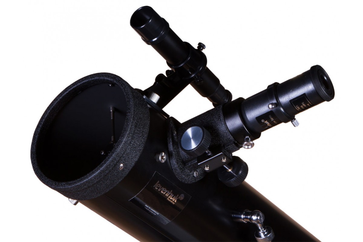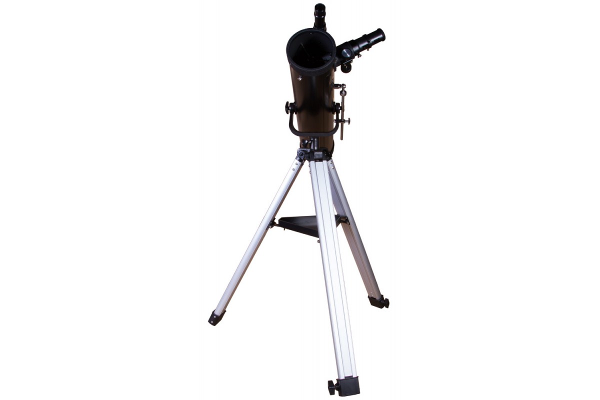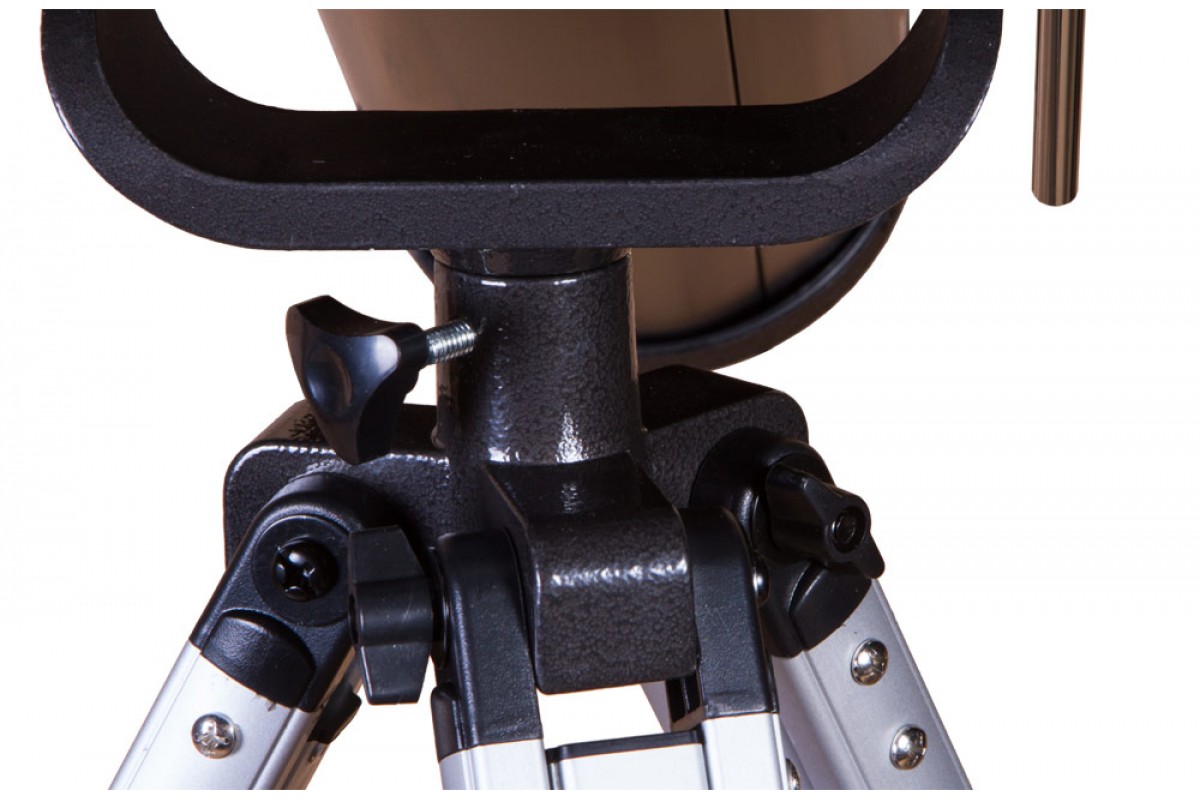 Телескоп установлен на азимутальную монтировку, которая позволяет перемещать оптическую трубу по горизонтали и по вертикали. Levenhuk Skyline BASE 80S наводится на астрономические объекты просто и быстро – с управлением легко справится даже ребенок. 6-кратный оптический искатель – дополнительная помощь при наведении. Монтировка, в свою очередь, фиксируется на алюминиевой треноге. Она стоит устойчиво и не качается даже на неровных поверхностях. Высоту ее ножек можно регулировать. Есть лоток для аксессуаров.