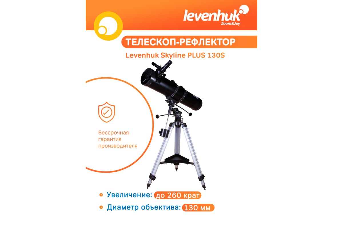 Levenhuk Skyline PLUS 130S – рефлектор Ньютона для начинающих любителей астрономии, который станет прекрасным помощником в изучении красот нашей Вселенной. В него видны не только планеты Солнечной системы и Луна, но и далекие туманности и галактики, загадочные двойные звезды и невероятной красоты звездные скопления. Телескоп ориентирован на начинающих пользователей, отлично подходит для длительных наблюдений за космосом, а в опытных руках сможет стать оптическим инструментом для астрофотографии (требуется приобретение дополнительных аксессуаров).