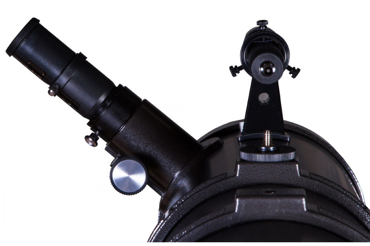 Для поиска астрономических объектов и их ведения по небосклону используются 6-кратный оптический искатель и экваториальная монтировка. Ход монтировки плавный, без рывков и колебаний. Монтировка устанавливается на алюминиевую треногу, высоту которой можно регулировать. Каждая ножка треноги настраивается индивидуально, что позволяет размещать телескоп даже на неровных поверхностях. Есть лоток для аксессуаров.