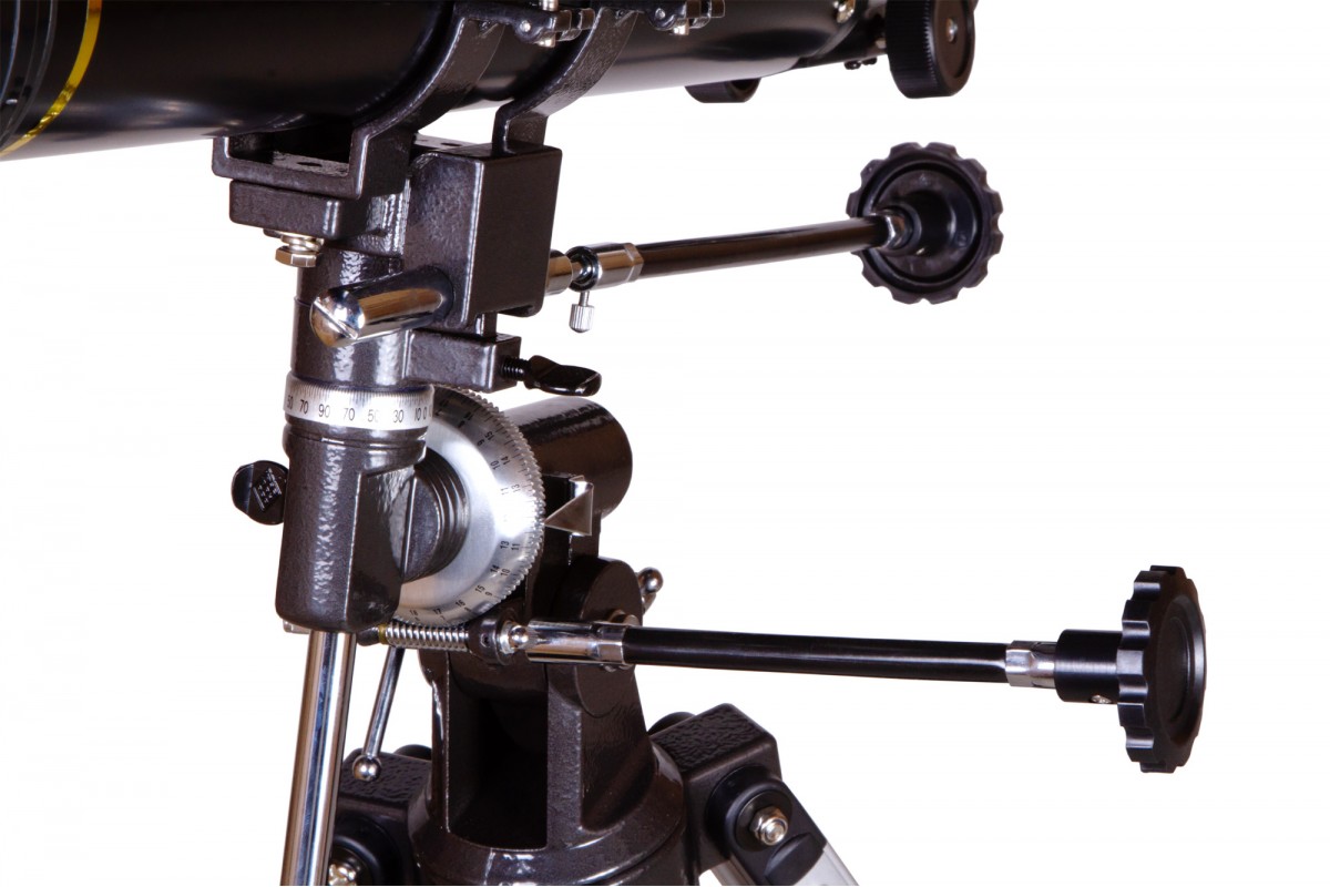 Оптическая труба установлена на экваториальную монтировку, которая позволяет точно и легко управлять телескопом. Она требует времени на освоение, но дает лучшие результаты при изучении космоса, чем более простая азимутальная монтировка. Тренога сделана из алюминия, она устойчивая и надежная. Высоту ножек треноги можно регулировать, есть лоток для аксессуаров.