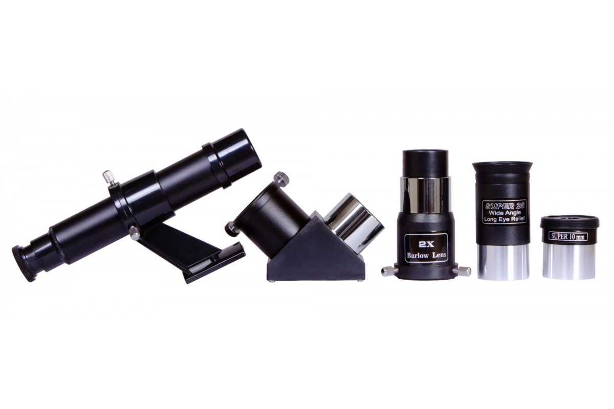 • Исчерпывающий набор оптических аксессуаров: два окуляра, линза Барлоу, диагональное зеркало