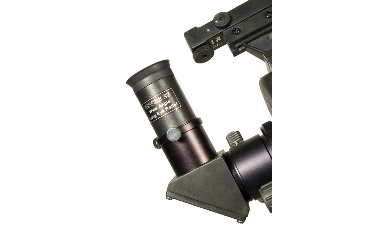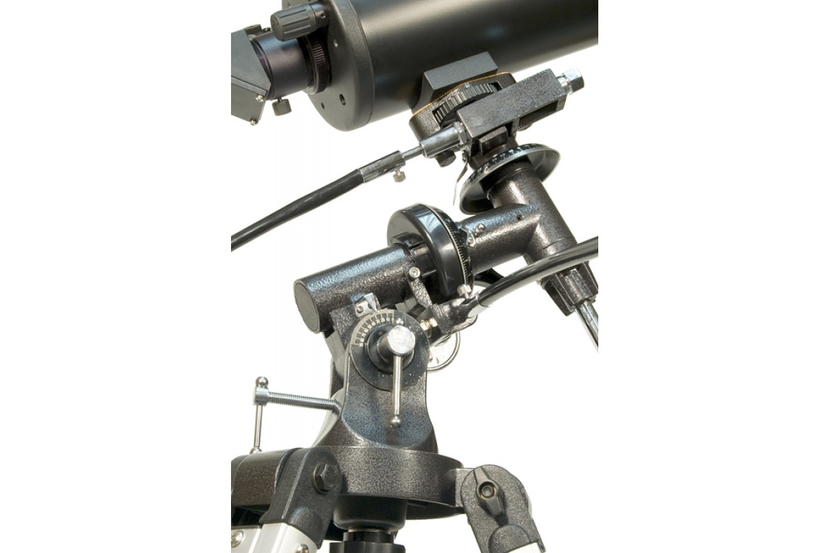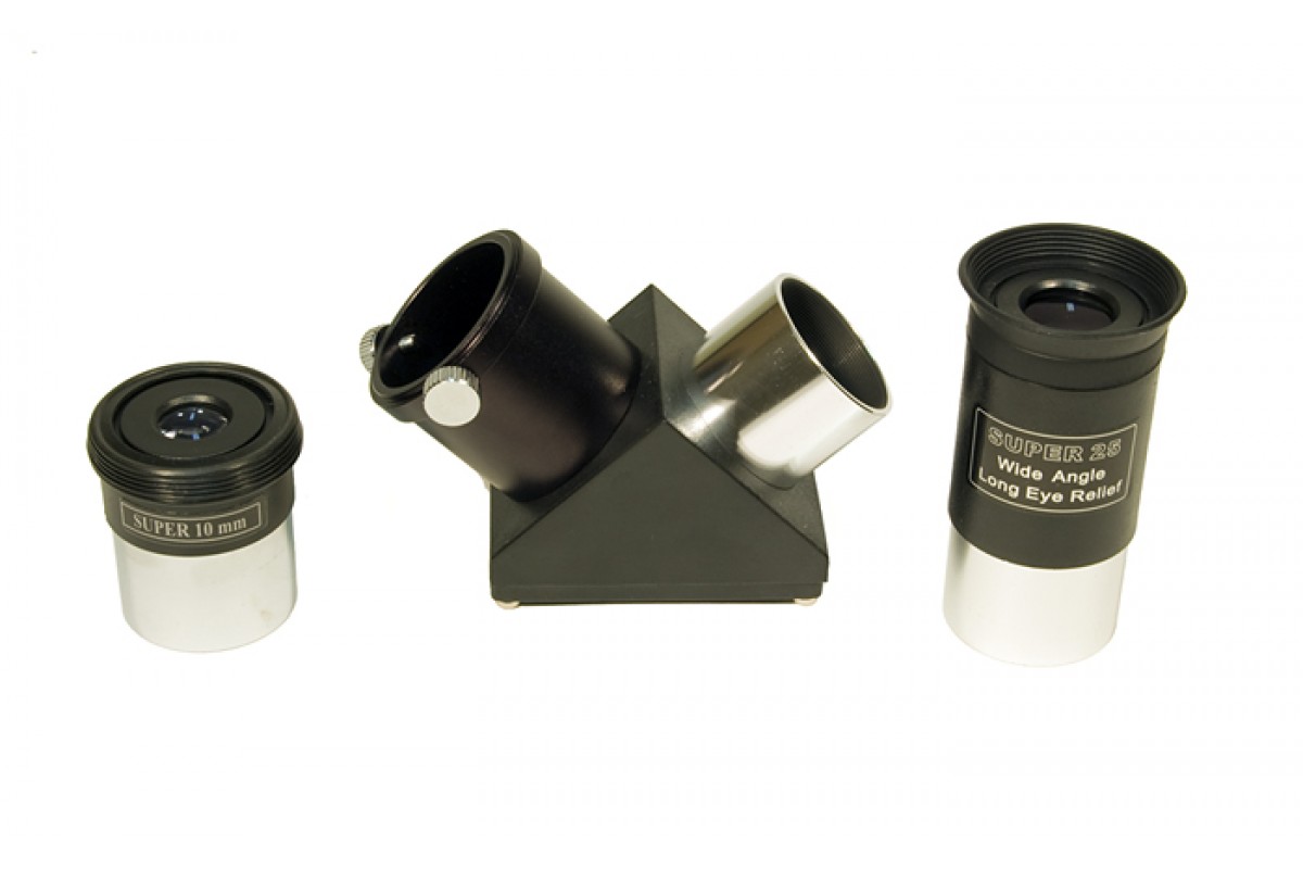 Данная модель комплектуется двумя окулярами: 10 мм (130x) и 25 мм (65x). Для поиска астрономических объектов используется искатель с красной точкой. Труба установлена на экваториальную монтировку. Высота треноги регулируется.