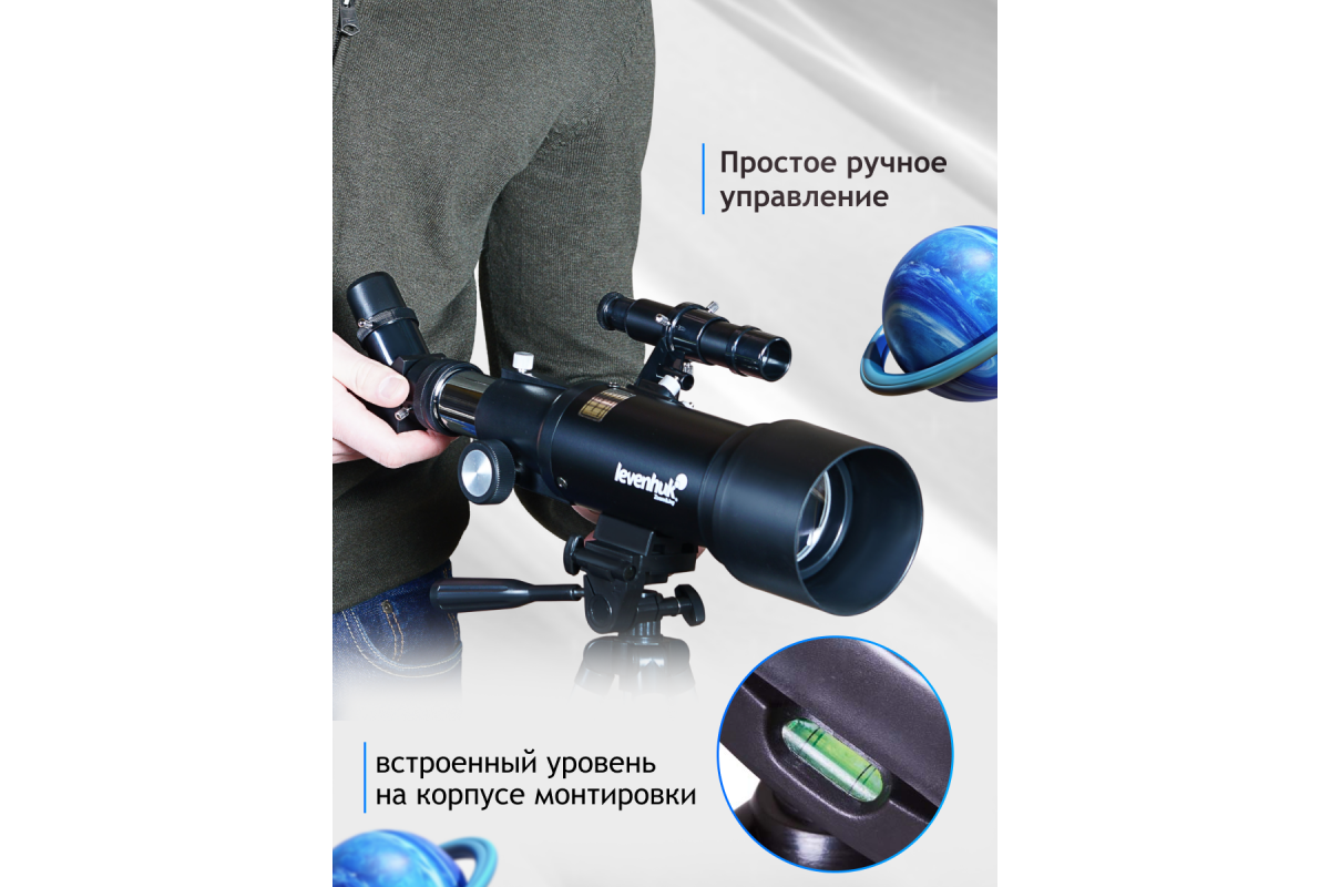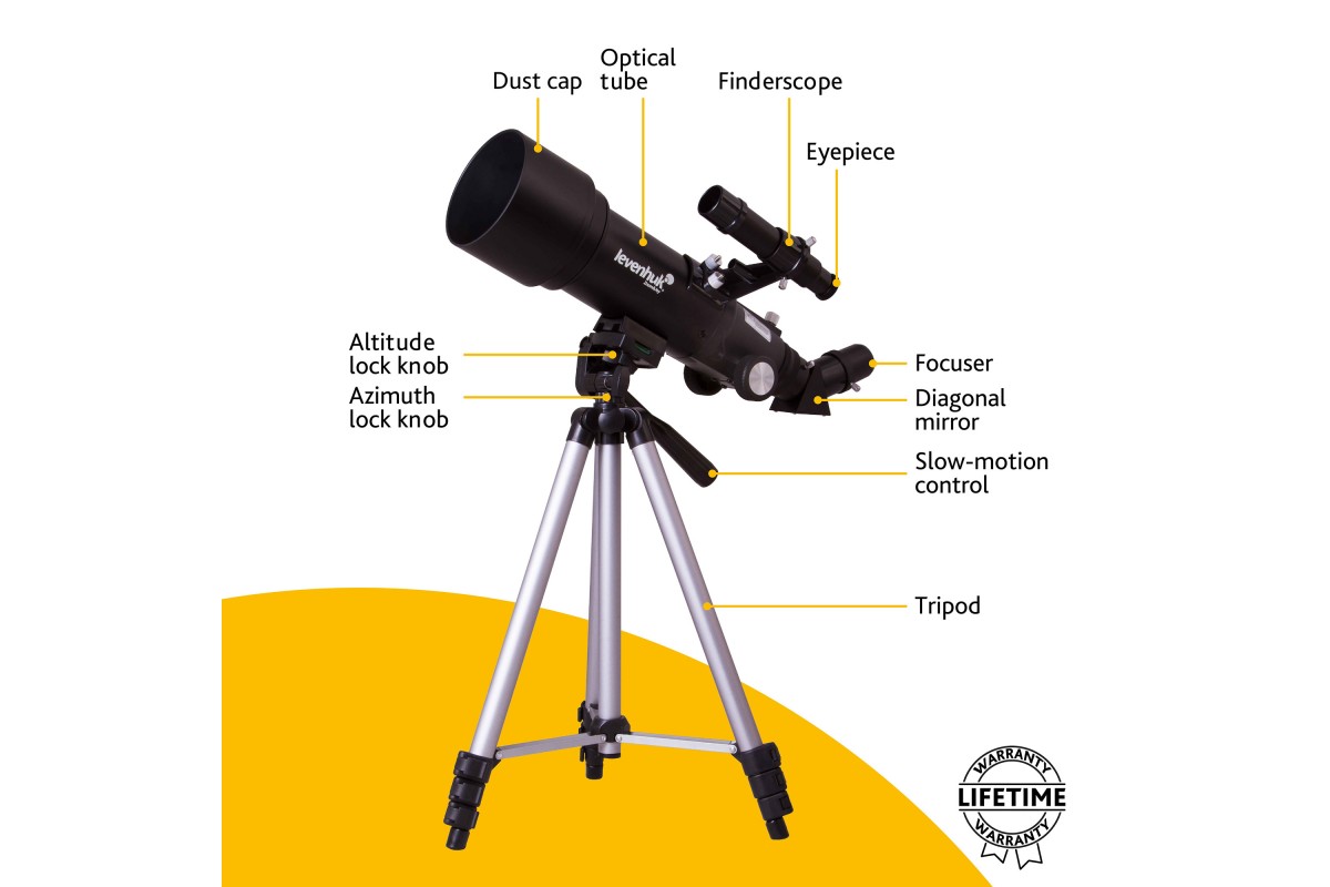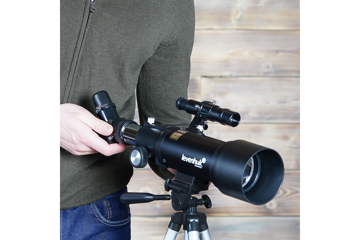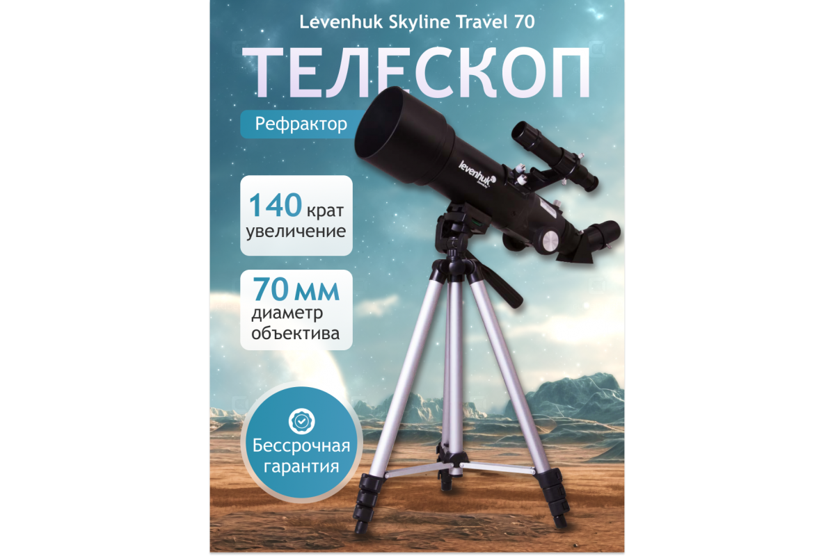 Телескоп Levenhuk Skyline Travel 70 – рефрактор на азимутальной монтировке, который отлично подойдет для астрономических и наземных наблюдений. В него вы изучите лунные кратеры и полярные шапки на Марсе, рассмотрите кольца Сатурна и диск Венеры, понаблюдаете за яркими звездами и туманностями. При необходимости вы сможете использовать телескоп в качестве зрительной трубы – он покажет вам все детали удаленных объектов.
