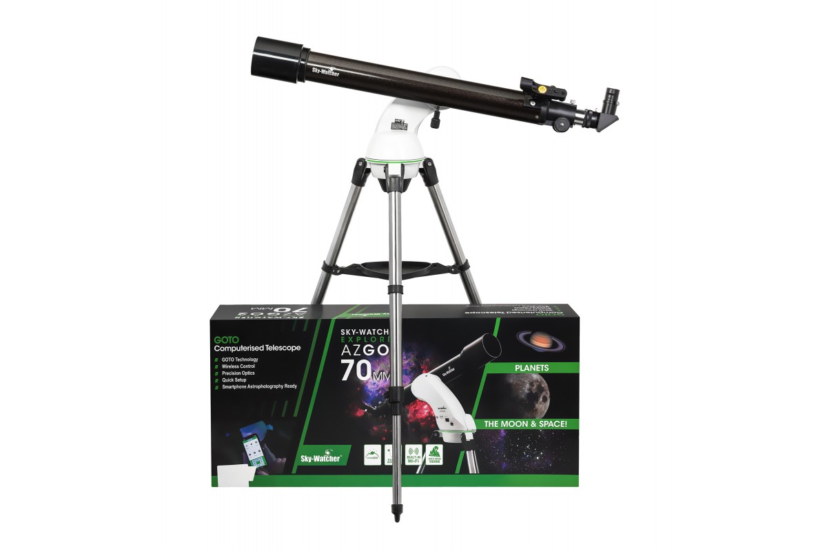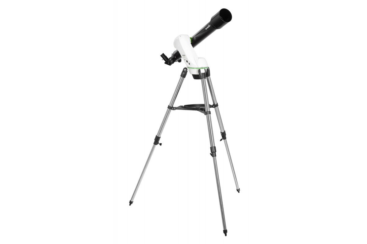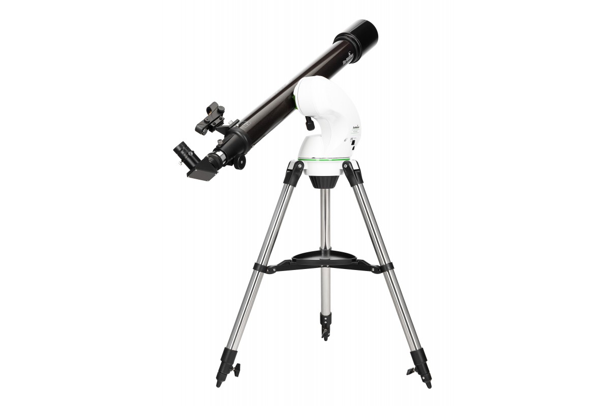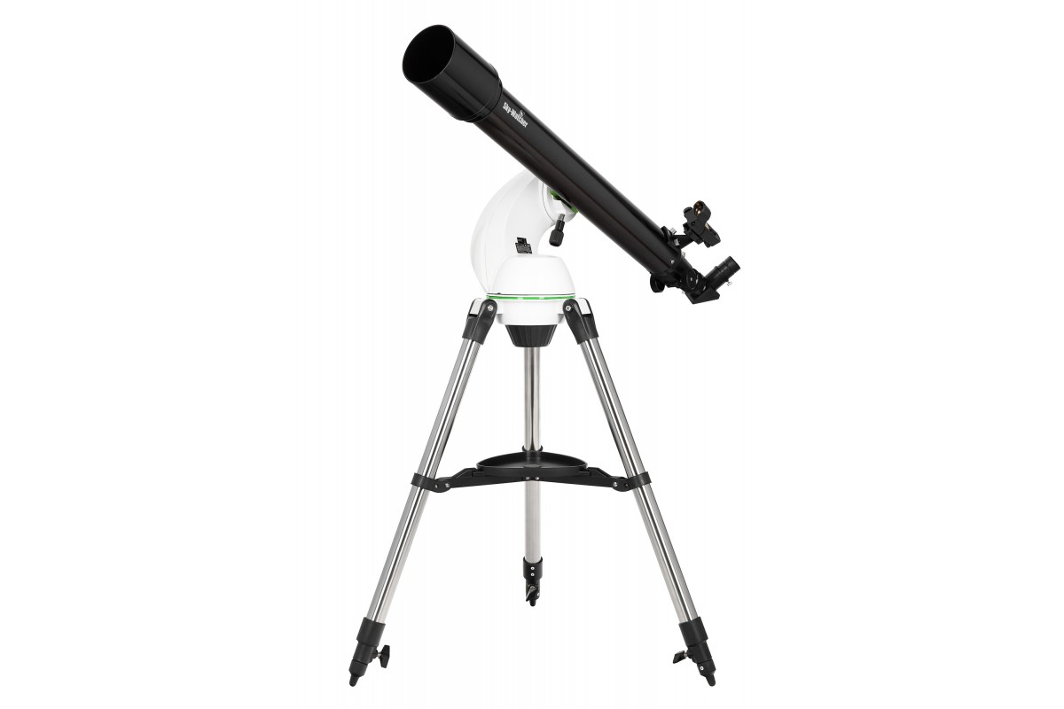 Телескоп Sky-Watcher 709AZ-GO2 SynScan GOTO с компьютеризованной азимутальной монтировкой относится к классу рефракторов-ахроматов и отлично подходит как продвинутым, так и начинающим астрономам для изучения планет Солнечной системы и некоторой части объектов дальнего космоса. Благодаря фокусному расстоянию 900 мм и апертуре 70 мм в такой телескоп можно увидеть фазы Венеры, лунные кратеры диаметром 8 км, кольца Сатурна, некоторые крупные шаровые и рассеянные скопления, а при идеальных условиях наблюдений – даже Большое Красное Пятно на Юпитере и щель Кассини. Изображение, видимое через данный прибор, остается стабильно четким и детализированным, так как хроматические аберрации в его оптической системе сведены к минимуму.