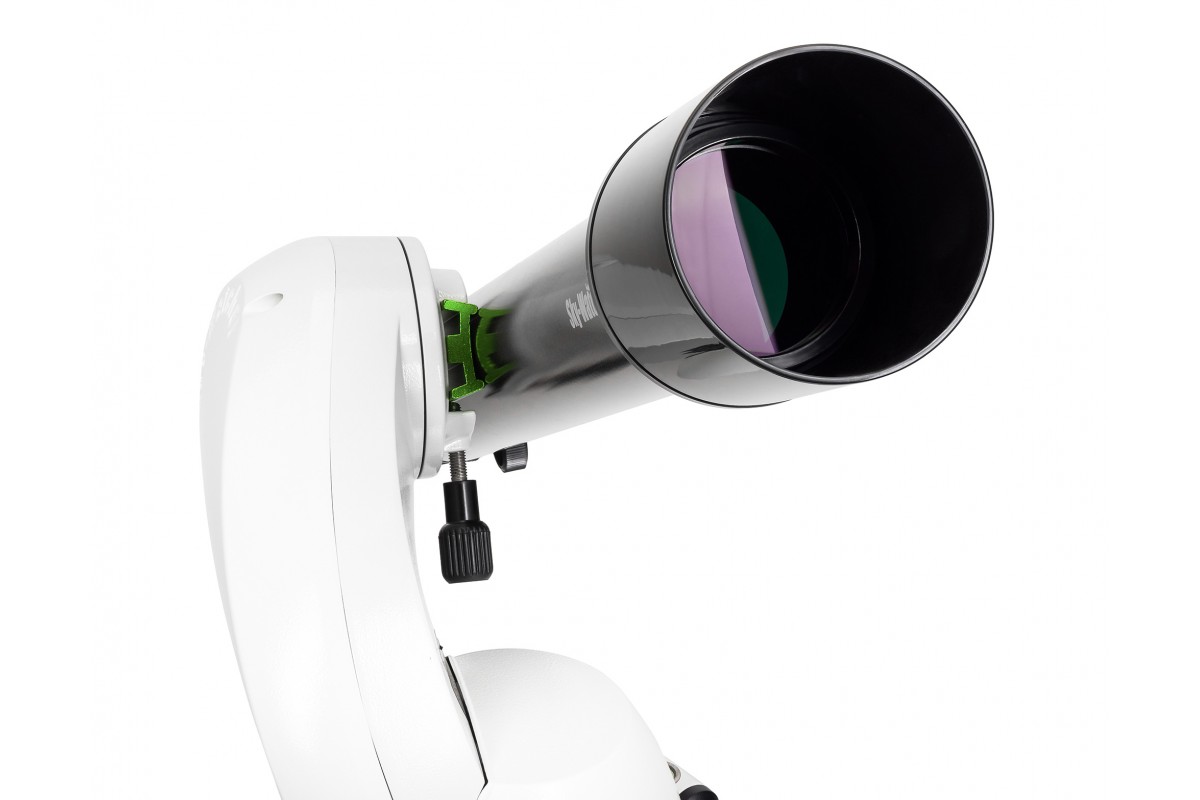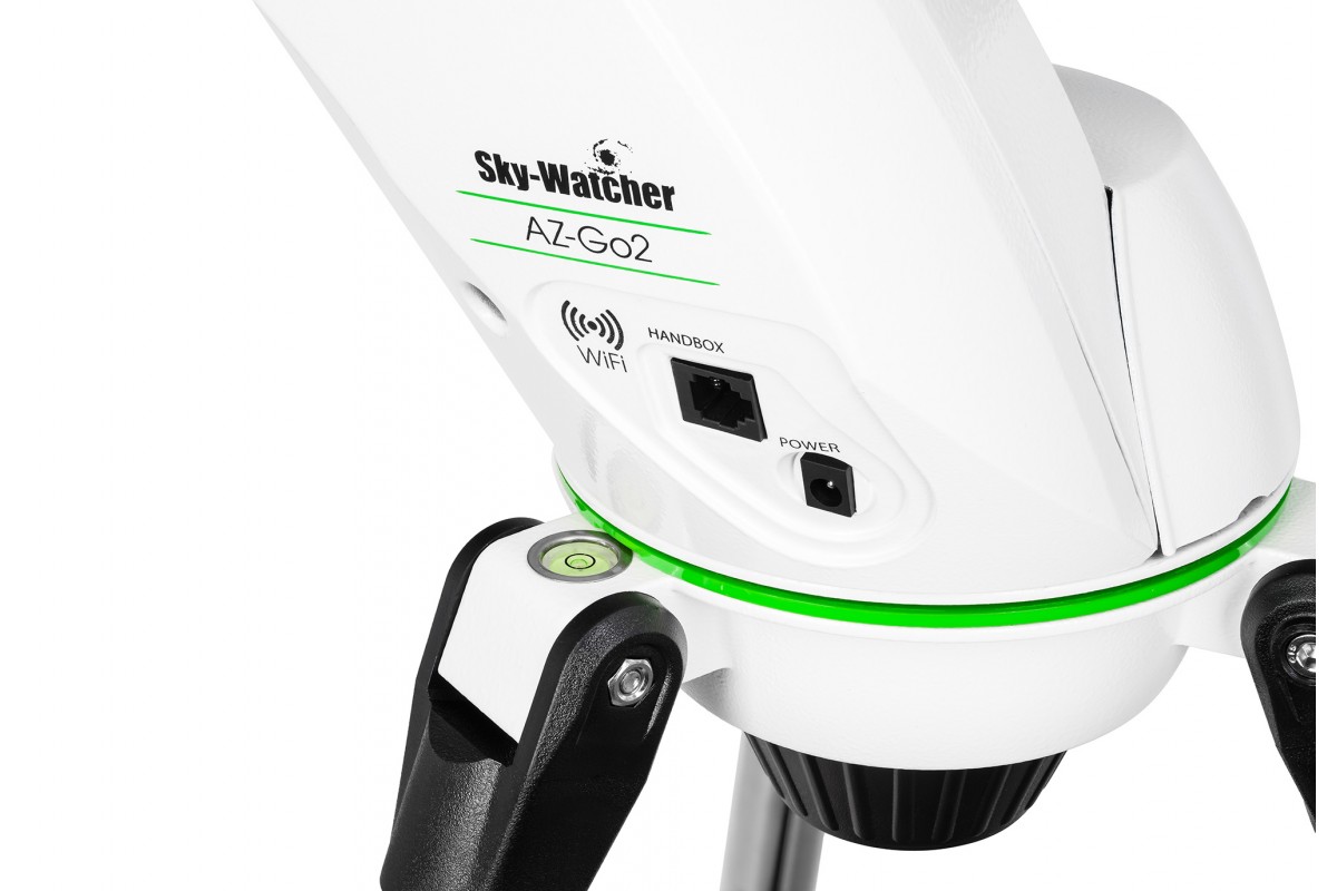 Оптическая труба устанавливается на компьютеризованную азимутальную монтировку AZ-GO2 SynScan GOTO при помощи стандартного крепления «ласточкин хвост». Главная задача монтировки – облегчить астроному поиск и наведение на нужные космические объекты. Для этого она оснащена встроенной системой автонаведения SynScan GOTO с базой данных координат более чем 42000 небесных тел. Управлять монтировкой можно как при помощи мобильного устройства на базе iOS или Android через изолированное подключение по сети Wi-Fi, так и при помощи кнопочного пульта SynScan (приобретается отдельно).