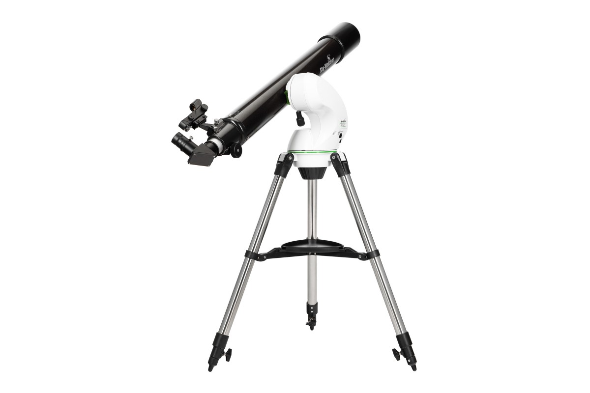 Вся конструкция телескопа Sky-Watcher 809AZ-GO2 SynScan GOTO устанавливается на прочную стальную треногу с лотком для аксессуаров. Компьютеризованные части телескопа работают от сети постоянного тока 12 В.