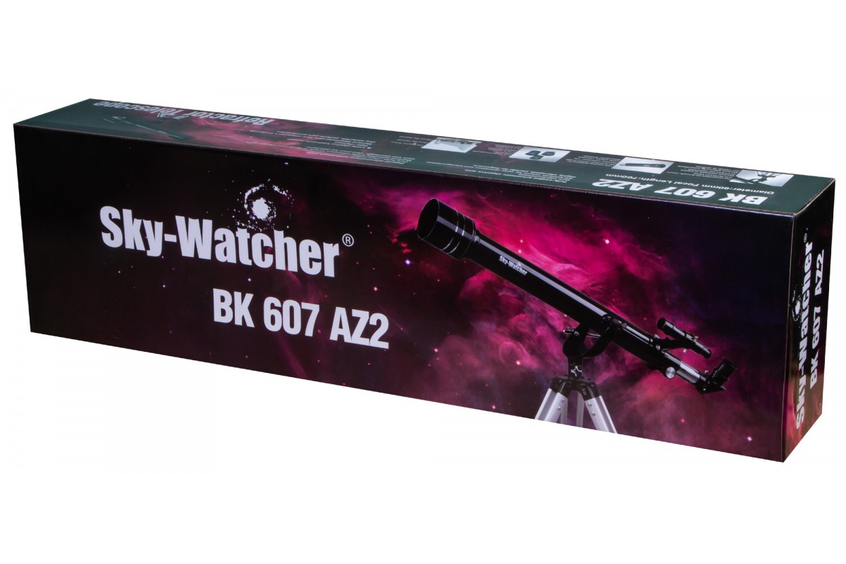 Sky-Watcher BK 607AZ2 – телескоп для начинающих астрономов, взрослых и детей. Он прост в управлении, не требует первичной настройки и регулярной юстировки, прекрасно подходит для наблюдения Луны, планет земной группы и наземных объектов. В него также можно увидеть дальние области Солнечной системы, но без деталей.