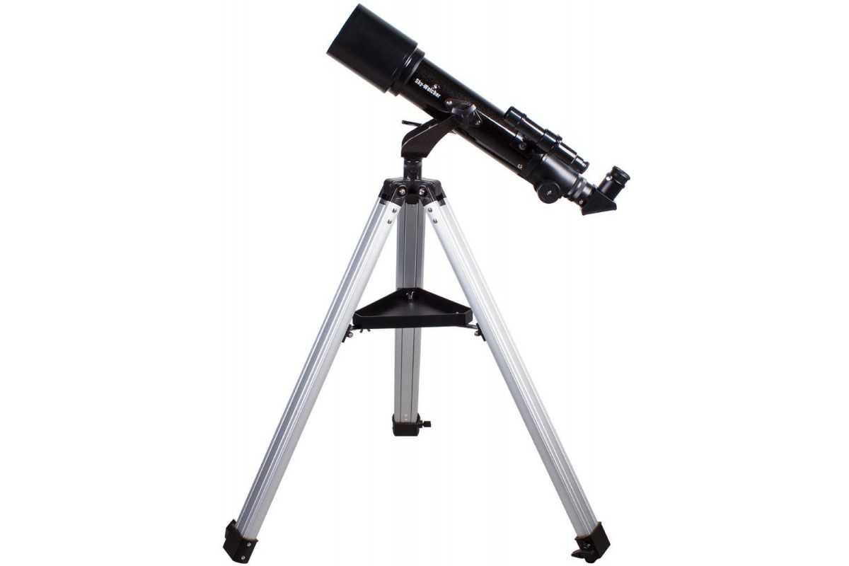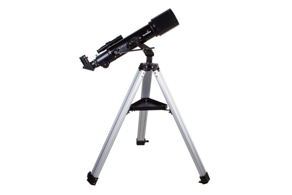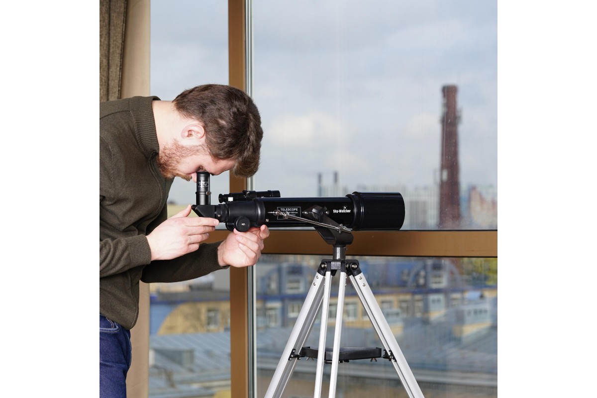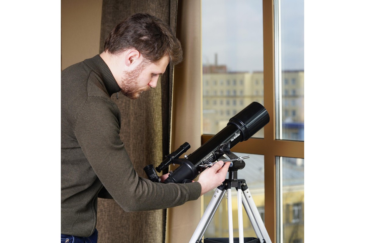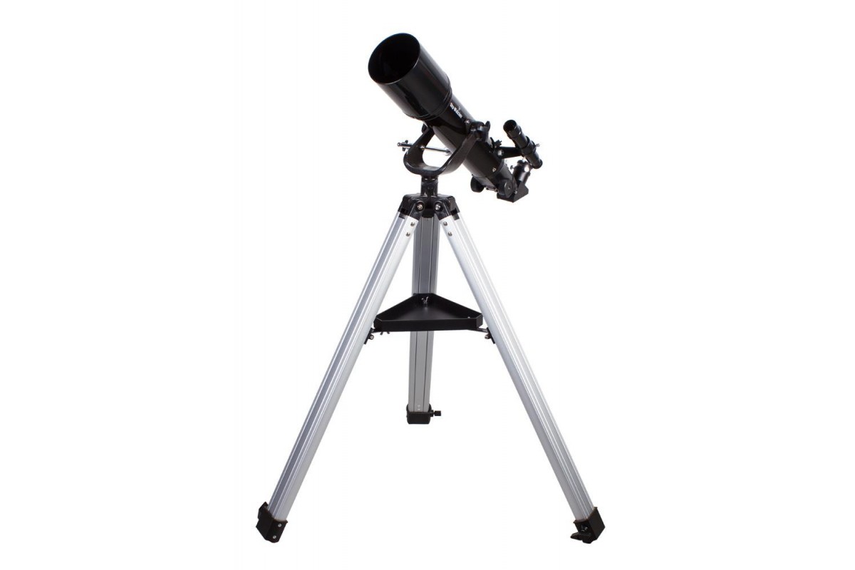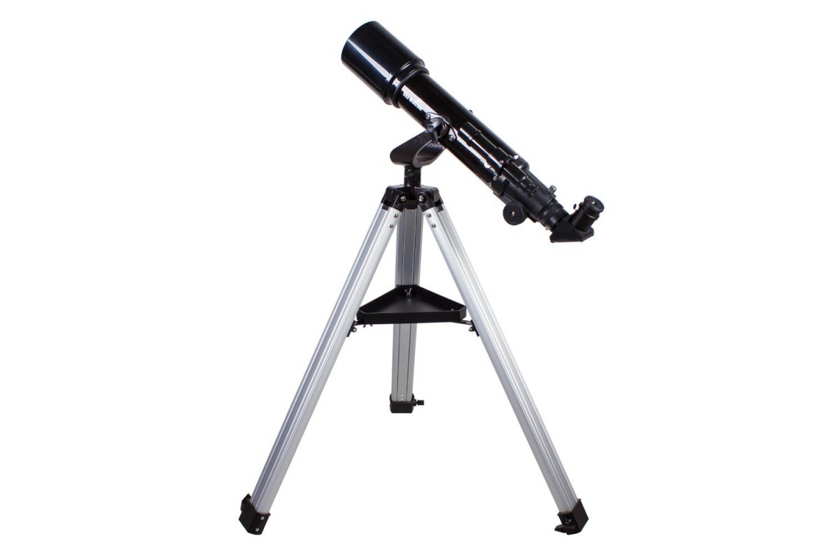 Компактный ахроматический рефрактор Sky-Watcher BK 705AZ2 станет идеальным выбором для начинающих любителей астрономии. Телескоп прекрасно подойдет для наблюдения Луны и планет Солнечной системы. Благодаря небольшим размерам телескоп удобно брать с собой для загородных наблюдений. Ахроматический объектив диаметром 70 мм обеспечивает передачу четкого и резкого изображения с минимальными искажениями. Многослойное просветляющее покрытие линз повышает качество картинки. Для поиска объектов используется оптический искатель 6x24. Данная модель комплектуется окулярами 10 мм и 25 мм, дающими увеличение 50 и 20 крат. Труба устанавливается на азимутальную монтировку. Алюминиевая тренога обеспечивает стабильное положение конструкции. Высоту треноги можно регулировать. Комплект поставки: