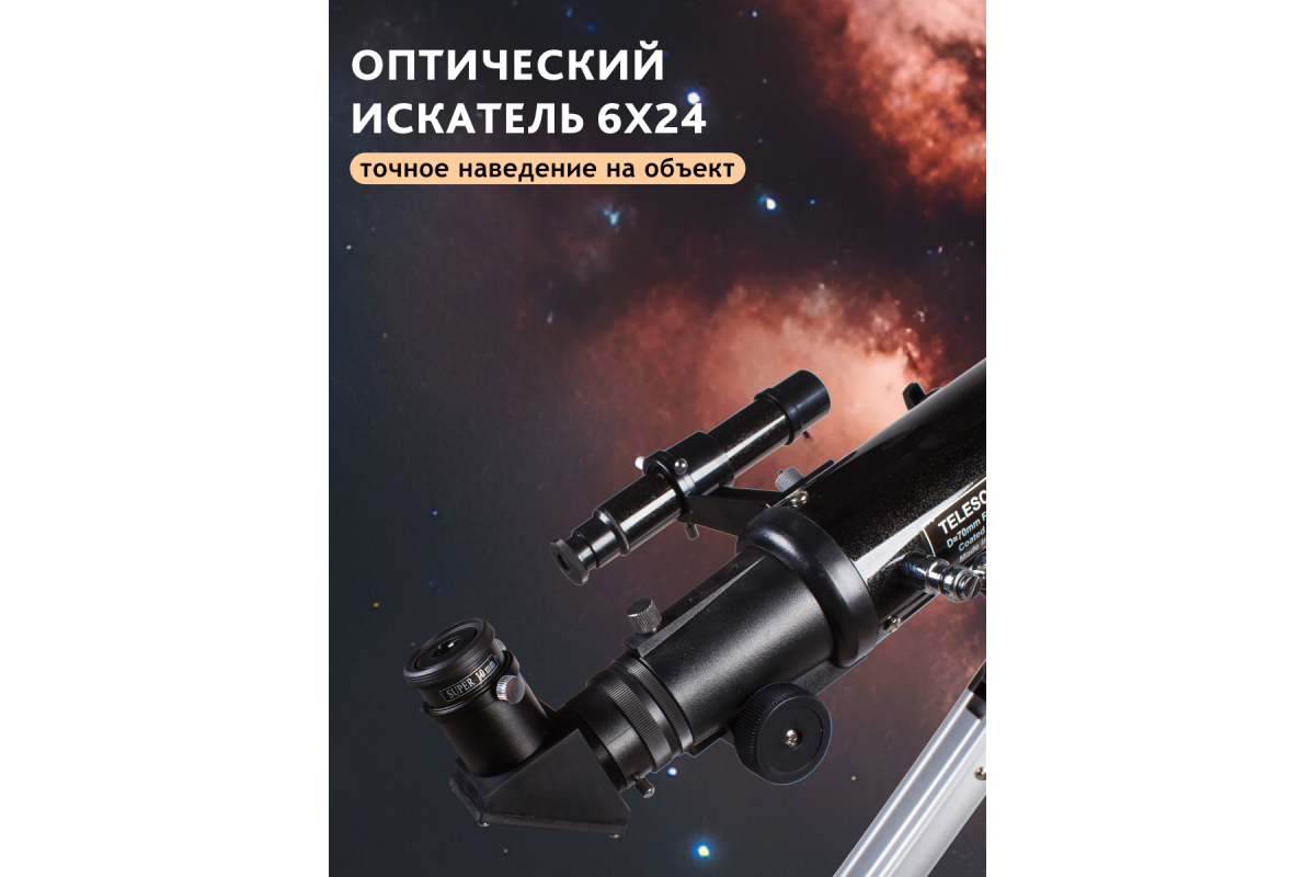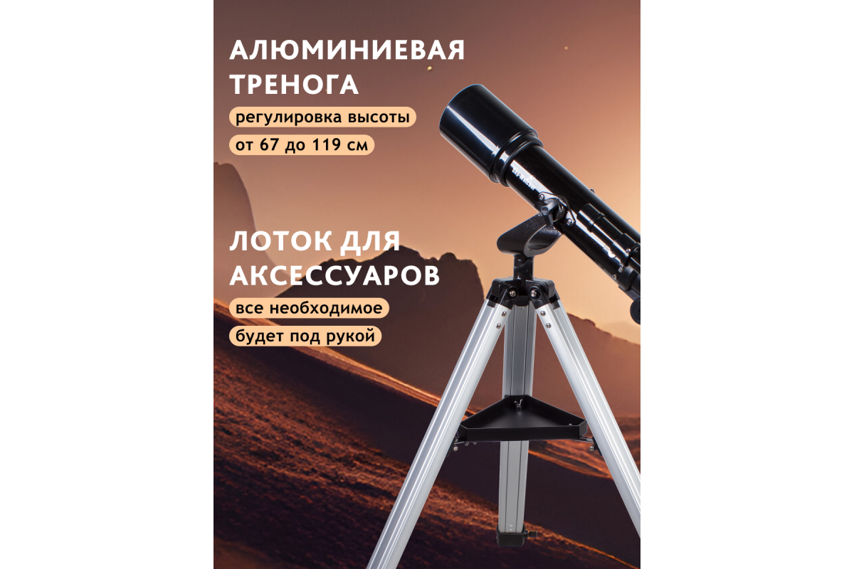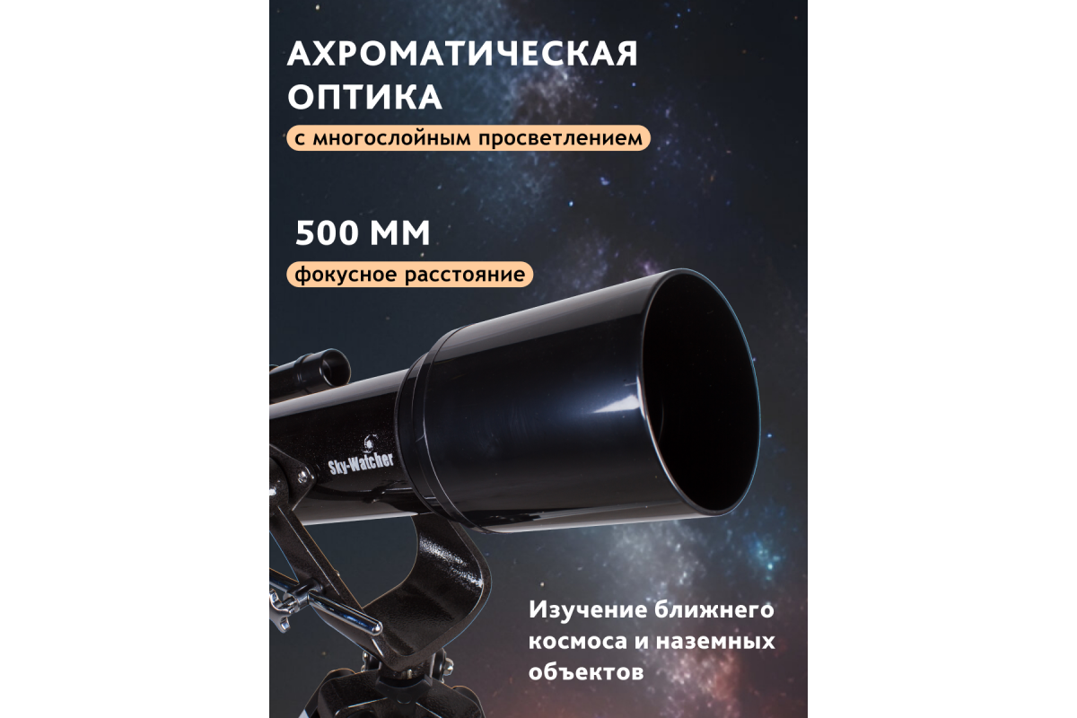 Ахромат. Диаметр объектива: 70 мм. Фокусное расстояние: 500 мм.