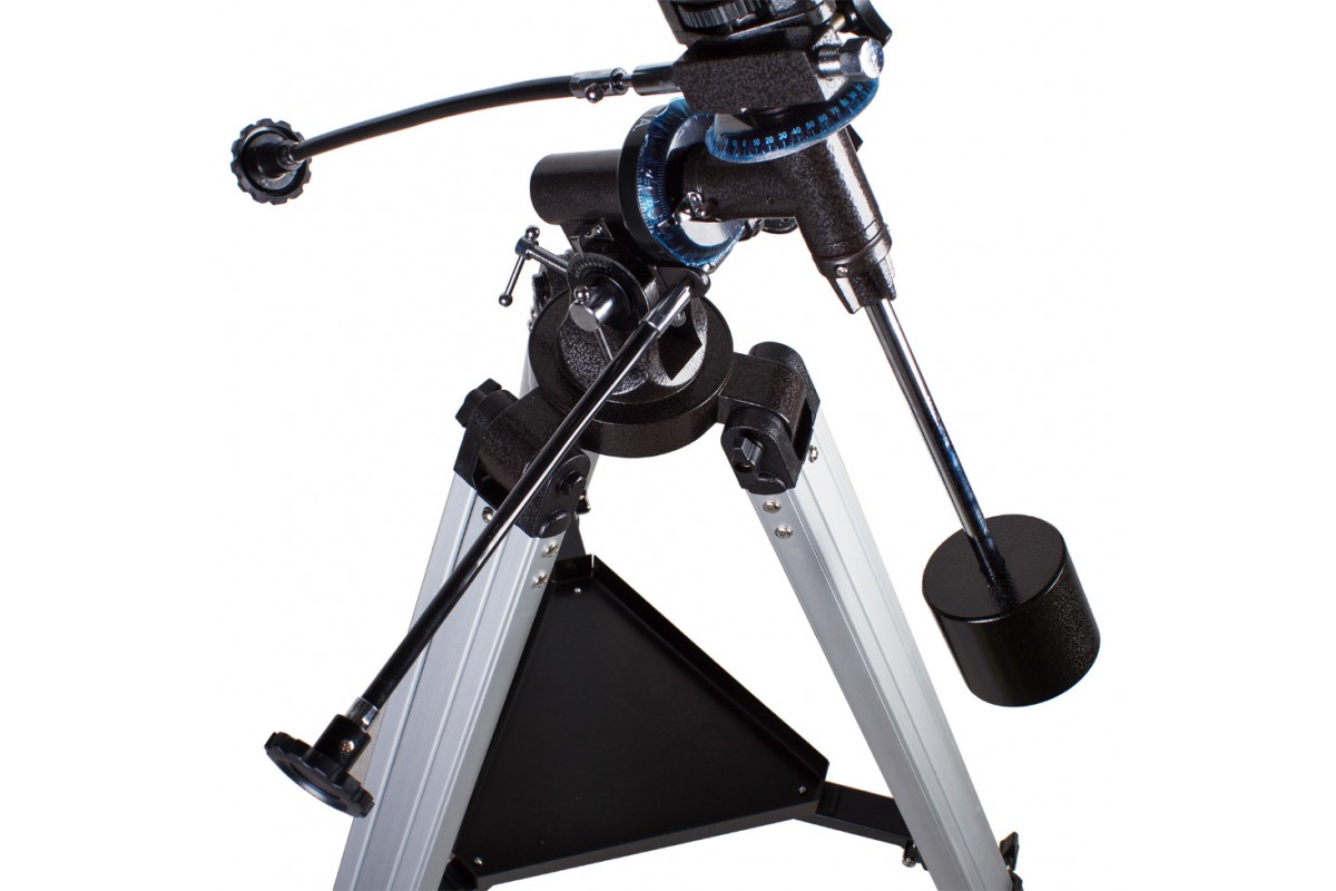 Оптическая труба устанавливается на экваториальную монтировку. Такая монтировка дает возможность компенсировать суточное вращение и обеспечивает точное ведение объектов. Алюминиевая тренога гарантирует устойчивое положение конструкции.