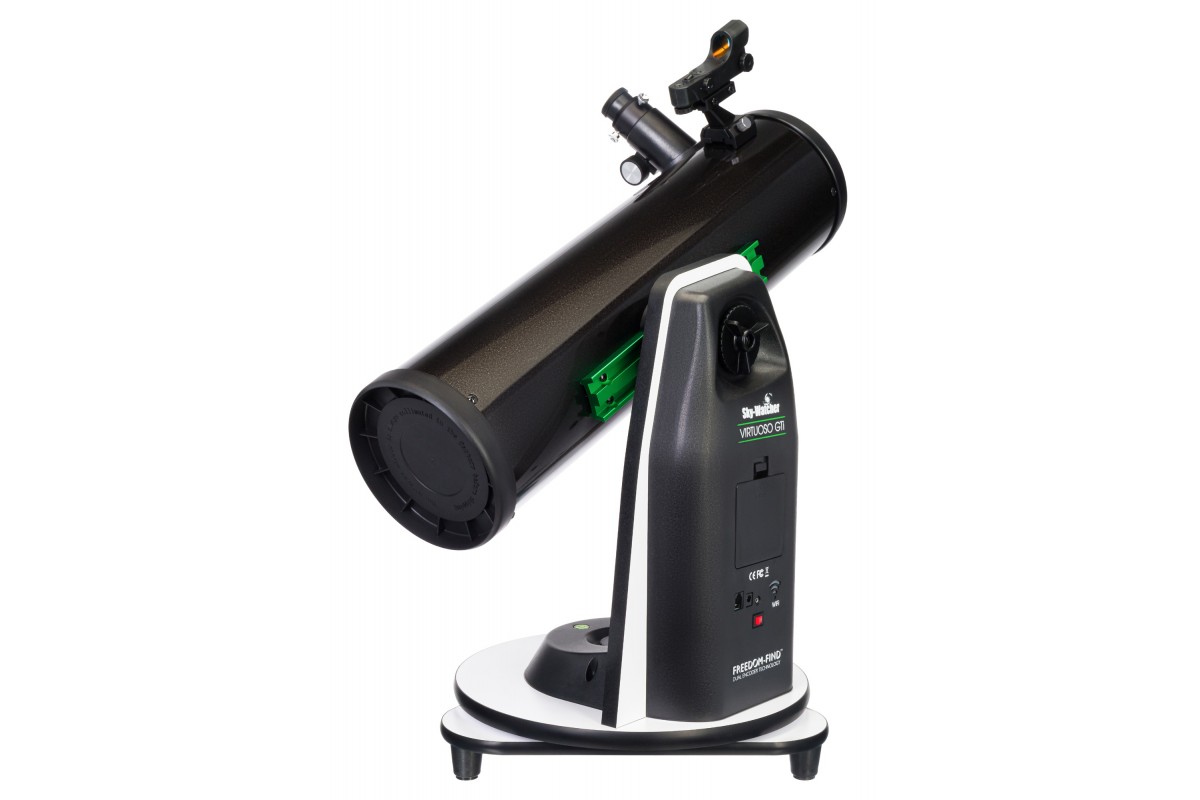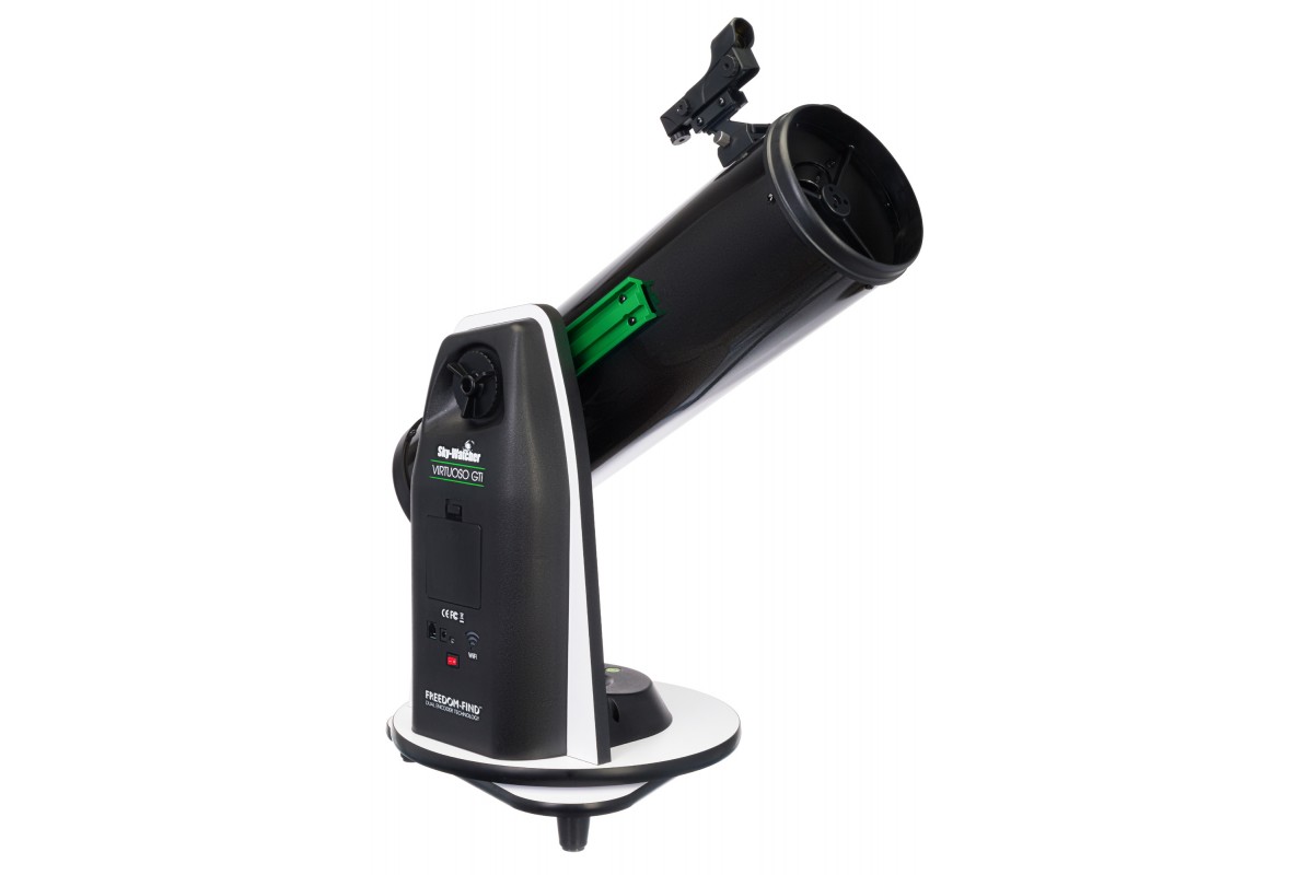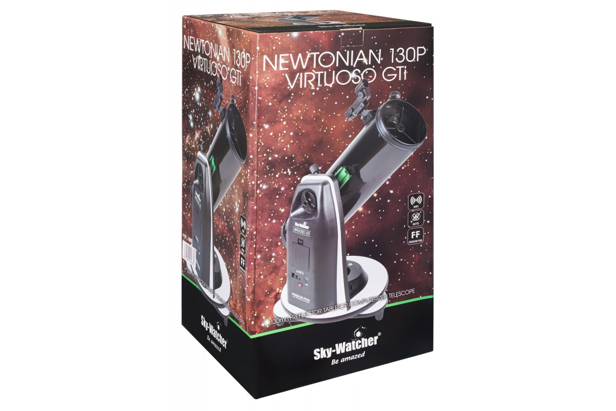 Рефлектор Ньютона Sky-Watcher Dob 130/650 Virtuoso GTi GOTO установлен на настольную компьютеризированную монтировку Добсона, отличается высокой светосилой, хорошо подходит для визуальных наблюдений дальнего космоса и при желании может использоваться для любительской астрофотографии. Телескоп достаточно небольшой, что делает его удачным выбором для выездов и размещения на балконе или лоджии. При этом он сохраняет все оптические возможности полноразмерных «собратьев». Эту модель можно смело рекомендовать начинающим любителям астрономии.