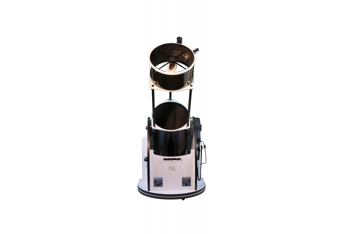 Телескоп Sky-Watcher Dob 16" (400/1800) Retractable SynScan GOTO – это мощный рефлектор Ньютона со складной трубой. В сложенном состоянии телескоп в полтора раза короче, поэтому его удобно транспортировать и хранить. Большое главное зеркало обеспечивает передачу яркого и чистого изображения даже тусклых объектов дальнего космоса. Главное зеркало имеет параболическую форму. Вторичное зеркало закреплено на тонких растяжках, не мешающих наблюдениям. Телескоп снабжен фокусером Крейфорда 2". Труба устанавливается на азимутальную монтировку Добсона с системой автоматического наведения. В базе данных содержатся координаты 42 900 небесных тел. Достаточно выбрать любое из них и нажать на кнопку GoTo на пульте. Телескоп автоматически наведется на выбранный объект. Монтировка подходит для визуальных наблюдений и для астрофотографии с короткими выдержками. Комплектация: