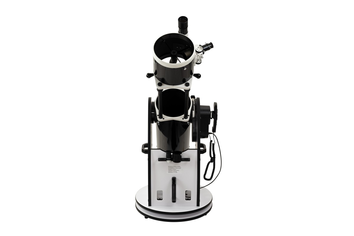Телескоп Sky-Watcher Dob 8" (200/1200) Retractable SynScan GOTO идеален для изучения дальнего космоса. Главное зеркало диаметром 203 мм собирает большое количество света и позволяет увидеть сотни туманностей, галактик, звездных скоплений, астероидов, комет и других небесных тел. Наилучших результатов можно достичь при наблюдениях вдали от городской засветки. Складная оптическая труба удобна в транспортировке. Монтировка Добсона оснащена моторными приводами. Система автонаведения позволяет быстро и точно найти любой объект из обширной базы данных монтировки.