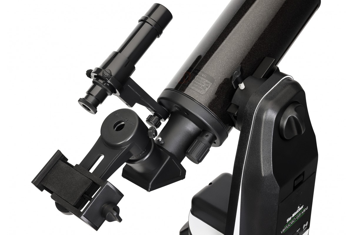 Sky-Watcher MAK 70 mini Virtuoso GTi дополняется следующими аксессуарами для наблюдений: двумя окулярами PHOTO с фокусным расстоянием 10 мм и 20 мм, диагональным зеркалом 90°, адаптером для смартфона (для любительской съемки фото и видео), алюминиевой треногой с лотком для аксессуаров. Для работы электронной части телескопа потребуется подключение к источнику постоянного тока.