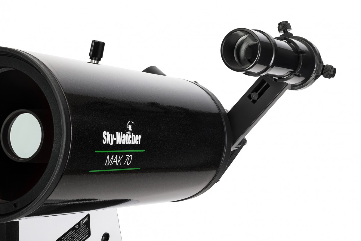 Sky-Watcher MAK 70 mini Virtuoso GTi – это зеркально-линзовый телескоп, собранный по схеме Максутова-Кассегрена, который может использоваться новичками для домашних и загородных наблюдений за звездным небом и космическими объектами. Его апертура составляет 70 мм, а фокусное расстояние – 1000 мм. Этих показателей будет достаточно для изучения кратеров, горных цепей и морей на Луне, рассматривания фаз Венеры, колец Сатурна, Большого Красного Пятна на Юпитере (при хороших условиях наблюдения), некоторых ярких звездных скоплений и галактик. Телескоп также можно использовать для наземных наблюдений при наличии специальной оборачивающей линзы, меняющей ориентацию изображения на привычную глазу.