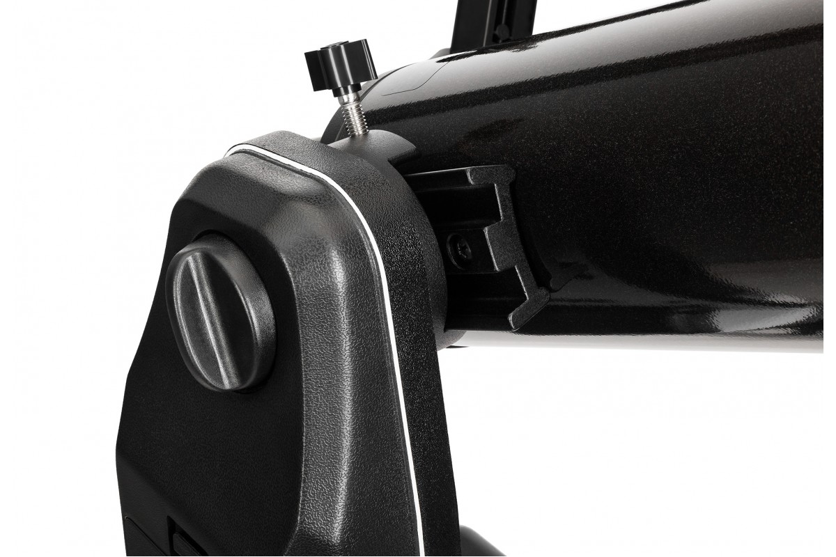 Оптическая труба устанавливается на идущую в комплекте компьютеризованную монтировку Добсона с встроенной системой автонаведения SynScan GOTO. Управление системой осуществляется через стороннее мобильное устройство (iOS, Android) с предустановленным фирменным приложением SynScan. Для активации управления потребуется сопрячь монтировку с приложением по сети Wi-Fi. Система SynScan GOTO позволяет пользователю выбирать интересующие космические объекты из списка и автоматически наводиться на них, экономя время и силы. Работу с монтировкой можно вести и в ручном режиме – для удобства самостоятельного поиска объектов в комплект поставки входит оптический искатель 5х24.