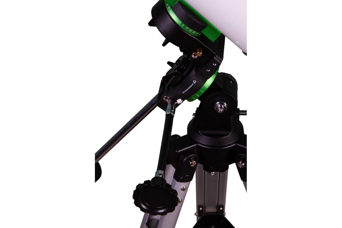 В комплекте поставки уже есть базовые аксессуары для начала наблюдений. Это два разнофокусных окуляра, диагональное зеркало и искатель с красной точкой. Оптическая труба снабжена классическим креплением «ласточкин хвост», при помощи которого и фиксируется к монтировке. Сама монтировка работает в экваториальном режиме, управляется вручную и может использоваться для установки других оптических труб небольшого размера или фотооборудования. Основа монтировки – шестерни со 122 зубцами и червячными передачами по обеим осям. Для удобства управления в комплектацию включены ручки тонких движений.