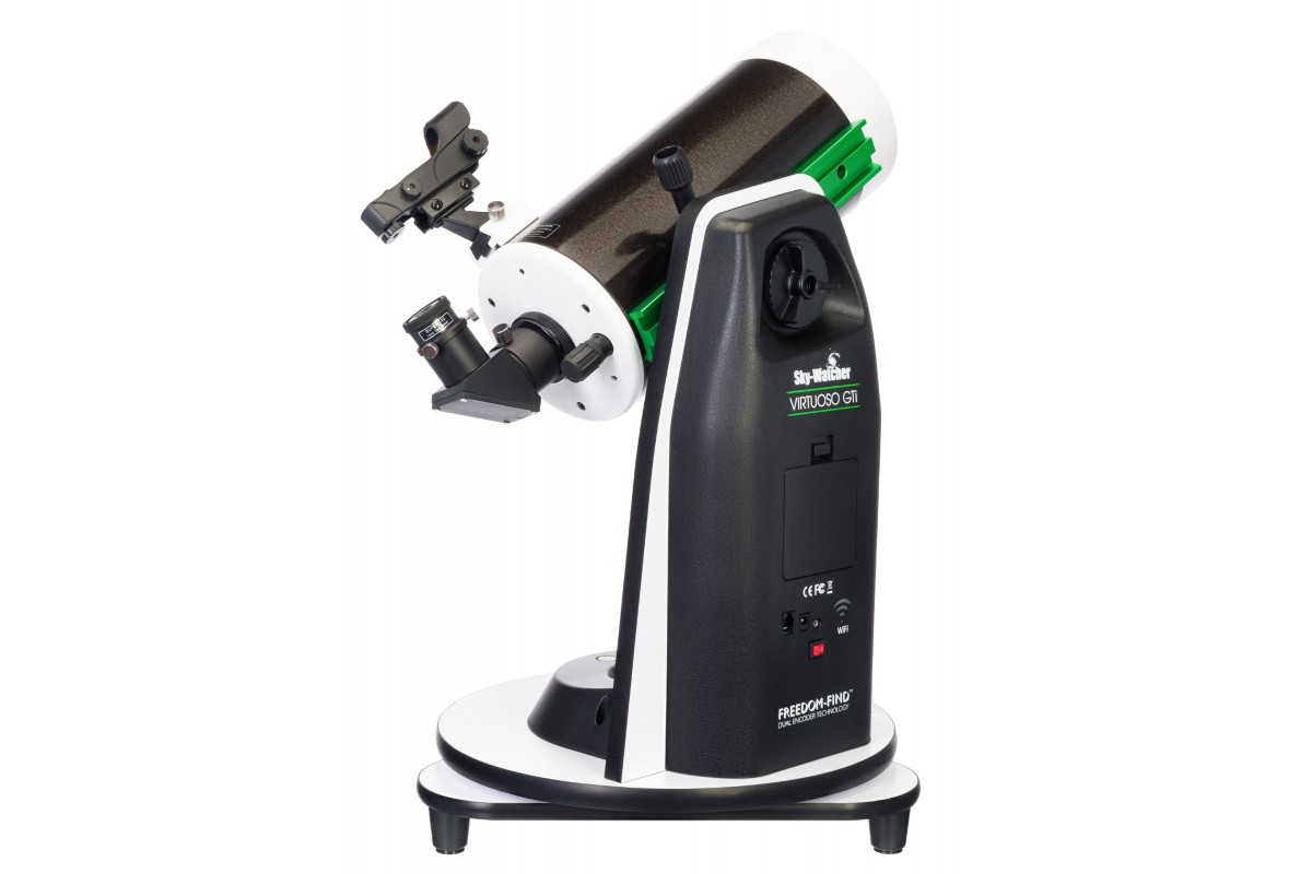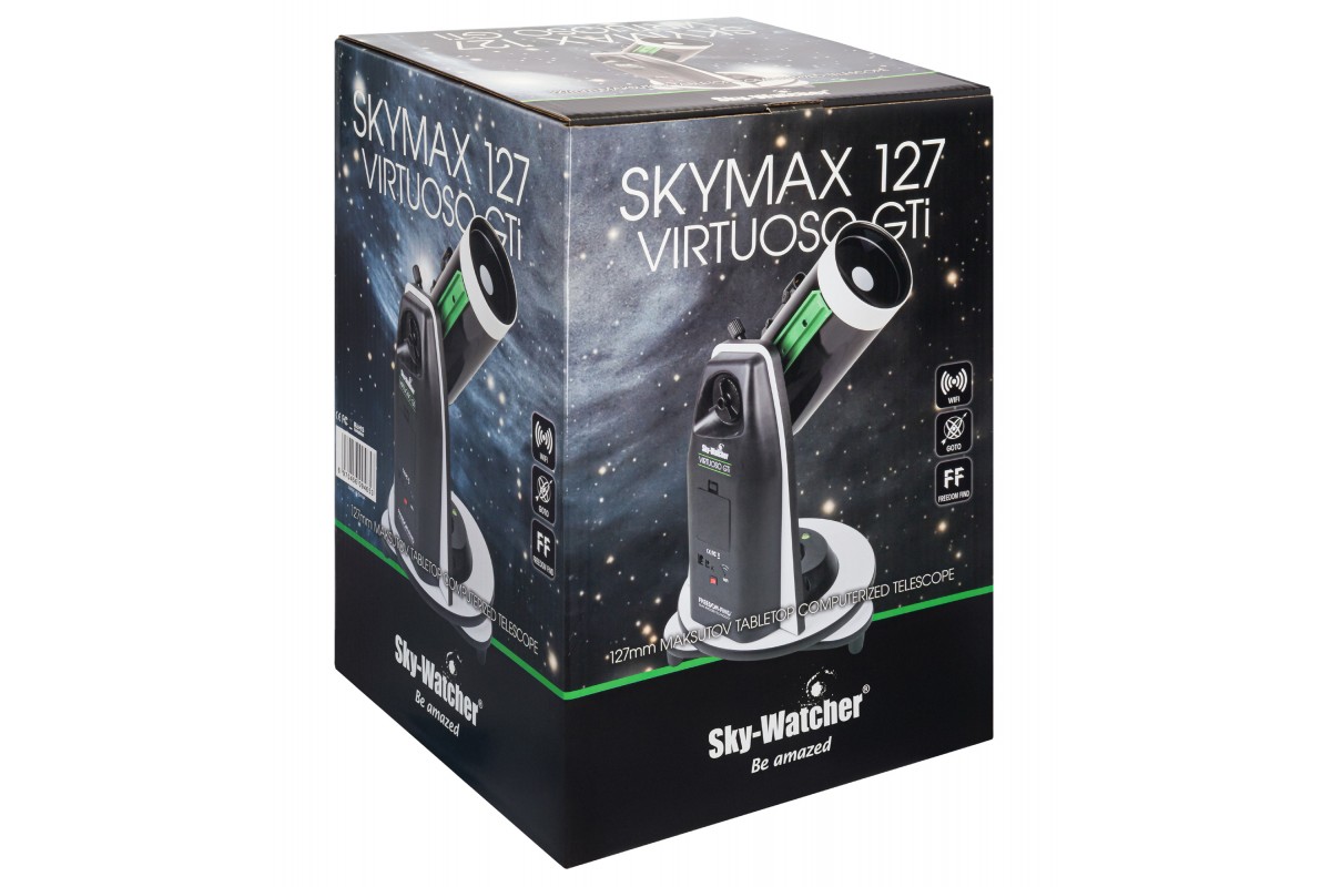 Телескоп Sky-Watcher MC127/1500 Virtuoso GTi GOTO – это компактный катадиоптрик, установленный на настольную монтировку Добсона с системой компьютерного наведения GOTO. Он хорошо подходит для визуальных наблюдений ближнего и дальнего космоса, прост в обращении и прекрасно подойдет для изучения космоса с террасы, лоджии или балкона. Телескоп станет хорошим подарком начинающему любителю астрономии любого возраста.
