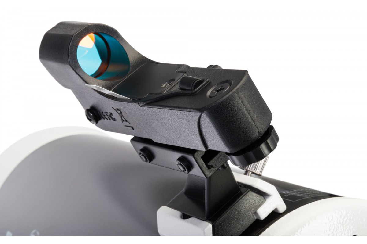 Самое приятное в этом телескопе – это возможность полностью сосредоточиться на наблюдениях, оставив поиск и ведение объектов системе GOTO. Вместо стандартного проводного пульта для управления следует использовать смартфон. Устанавливаете бесплатное скачиваемое приложение SynScan Pro (доступно для iOS и Android), включаете Wi-Fi на монтировке, наводите резкость – все готово! База координат содержит информацию о 42 000 астрономических объектов. Также монтировка улучшена системой энкодеров (технологией Freedom Find), которая упрощает обращение с телескопом, так как сохраняет информацию о первичном позиционировании.
