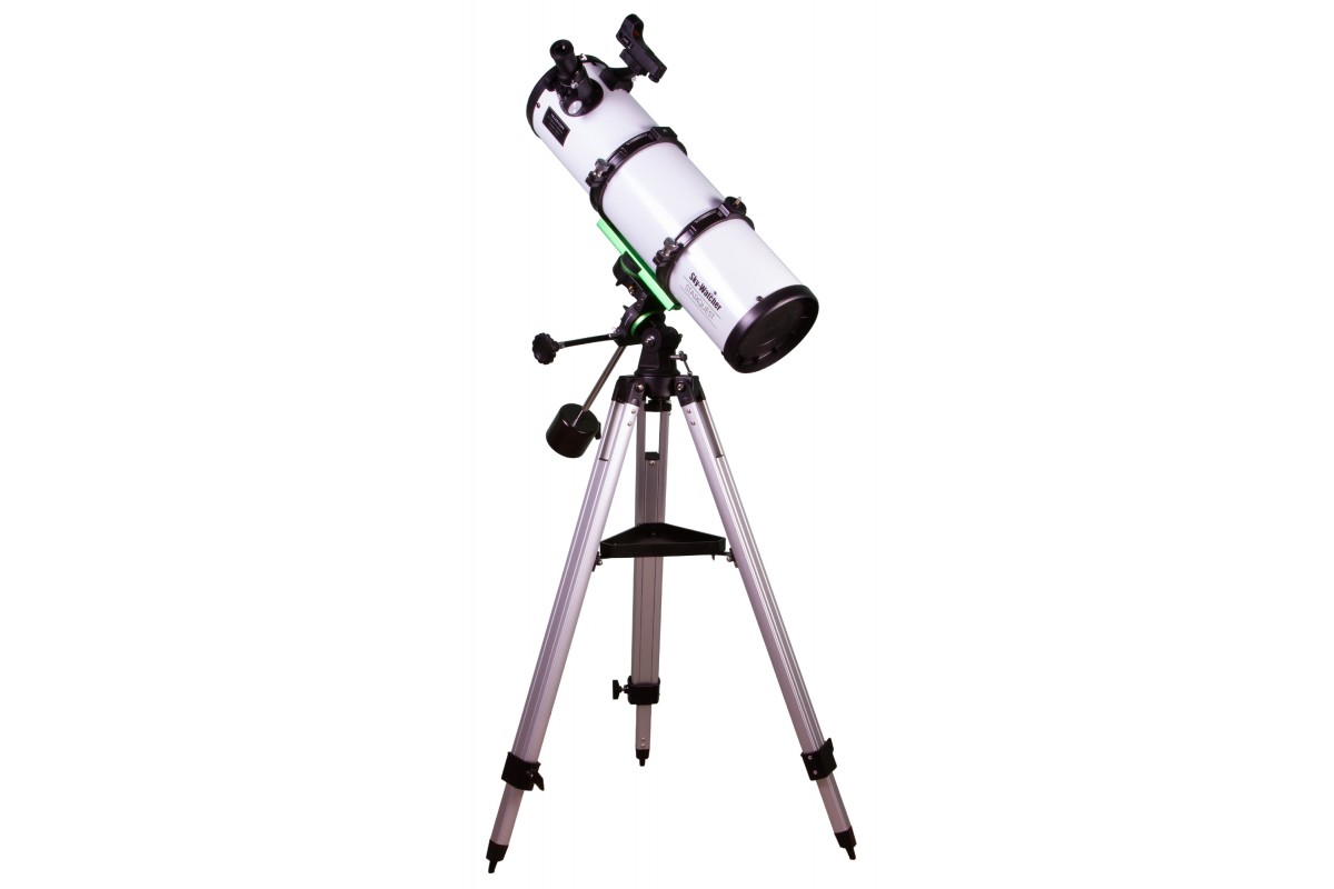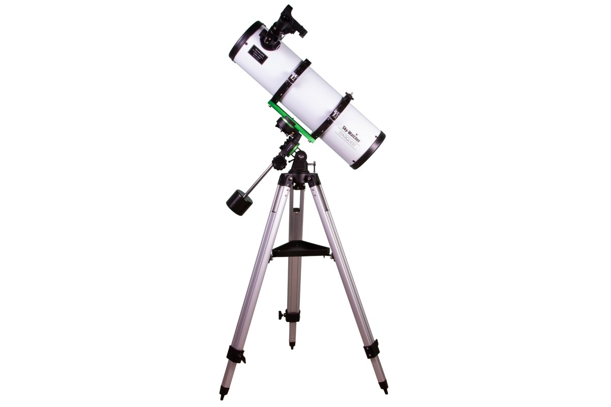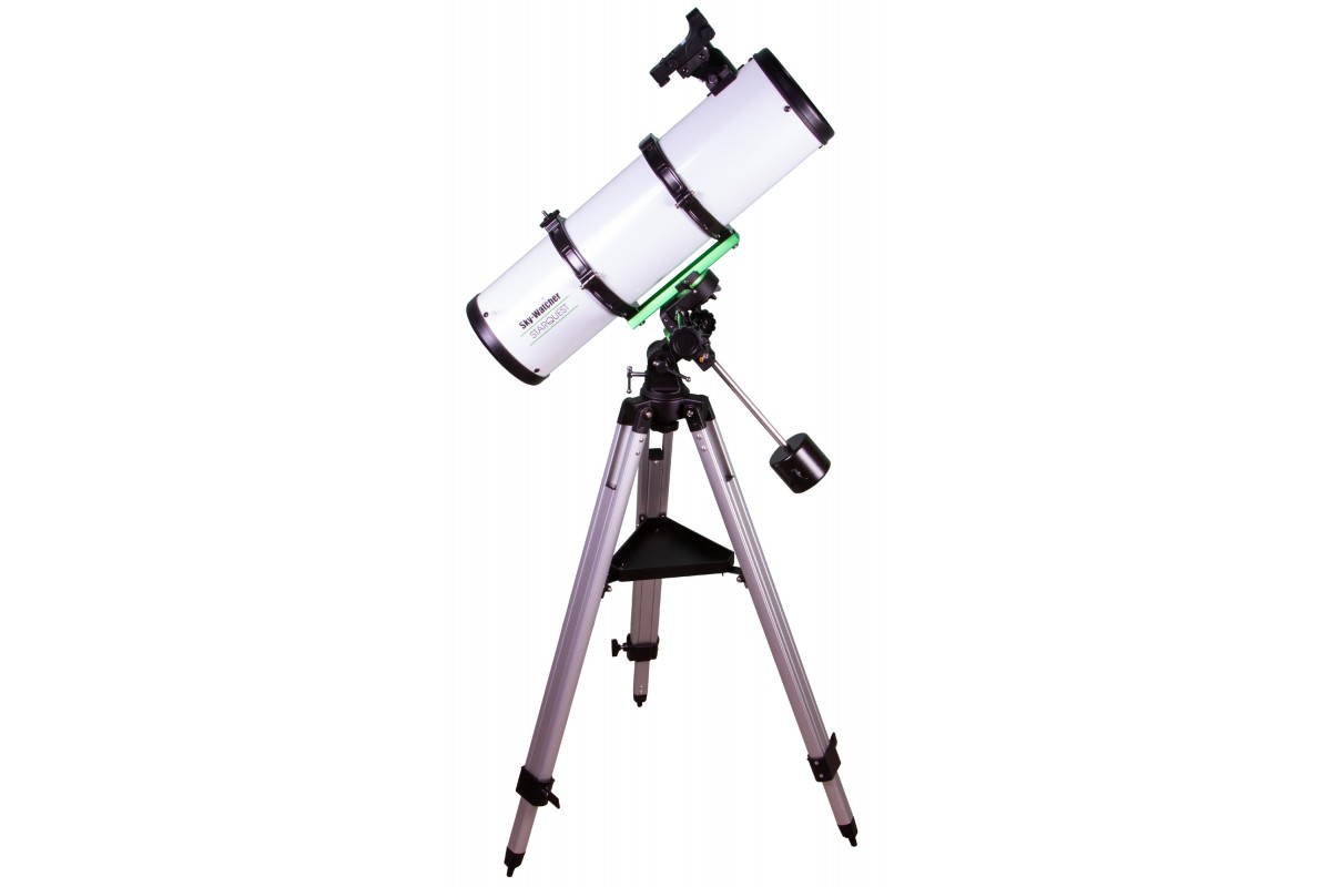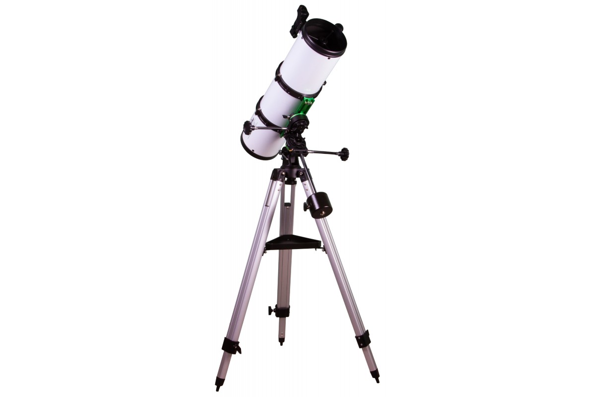 Оптическая схема включает в себя параболическое главное зеркало, поэтому телескоп передает контрастную и четкую картинку по всему полю зрения. В отличие от аналогов со сферическим зеркалом, этот телескоп даже на максимальном увеличении демонстрирует изображение, свободное от искажений. Отметим и светосилу этой модели – 130-миллиметровый объектив собирает свет на 30% лучше, чем объектив с апертурой 114 мм. Картинка заметно ярче, детали просматриваются четче. Из оптических аксессуаров в комплект поставки включены два окуляра и искатель с красной точкой. Зеркало не юстируется.