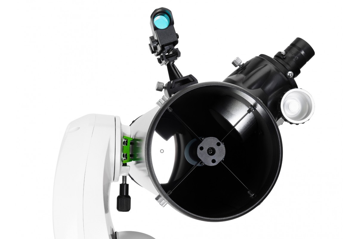Sky-Watcher P130650AZ-GO2 SynScan GOTO – рефлектор Ньютона на азимутальной монтировке, управлять которым можно прямо со смартфона или планшета. Монтировка оснащена системой автоматического наведения SynScan GOTO, а мобильное приложение, используемое для управления, содержит координаты свыше 10 000 астрономических объектов. Одним нажатием на экран мобильного устройства можно запустить поиск интересующего вас объекта на ночном небе, и монтировка сама наведет на него оптическую трубу.